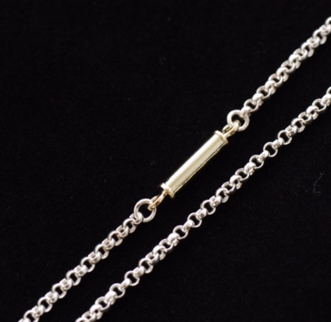 Prachtig assieraad collier van eerste gehalte zilver (de halsketting) en een gouden buisje waar as in wordt verwerkt. Mooi strak model. Dit ontwerp is exclusief gemaakt voor Artea Grafmonumenten. Prijs EUR 535,00