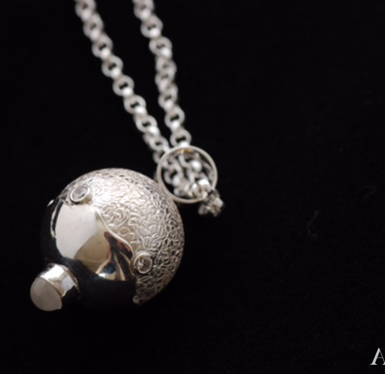 Schitterend assieraad collier zilver, Traan. Handgemaakt van eerste gehalte zilver, hier in combinatie met Maansteen van 5 mm en vijf Zirconia's van 2,5 mm. De 80 cm lange Jasseron ketting heeft massieve schakels. Een beetje as van uw dierbare wordt bewaard in de holle zilveren bol. EUR 569,00 (exclusief collier) Diverse colliers zijn verkrijgbaar vanaf EUR 52,00