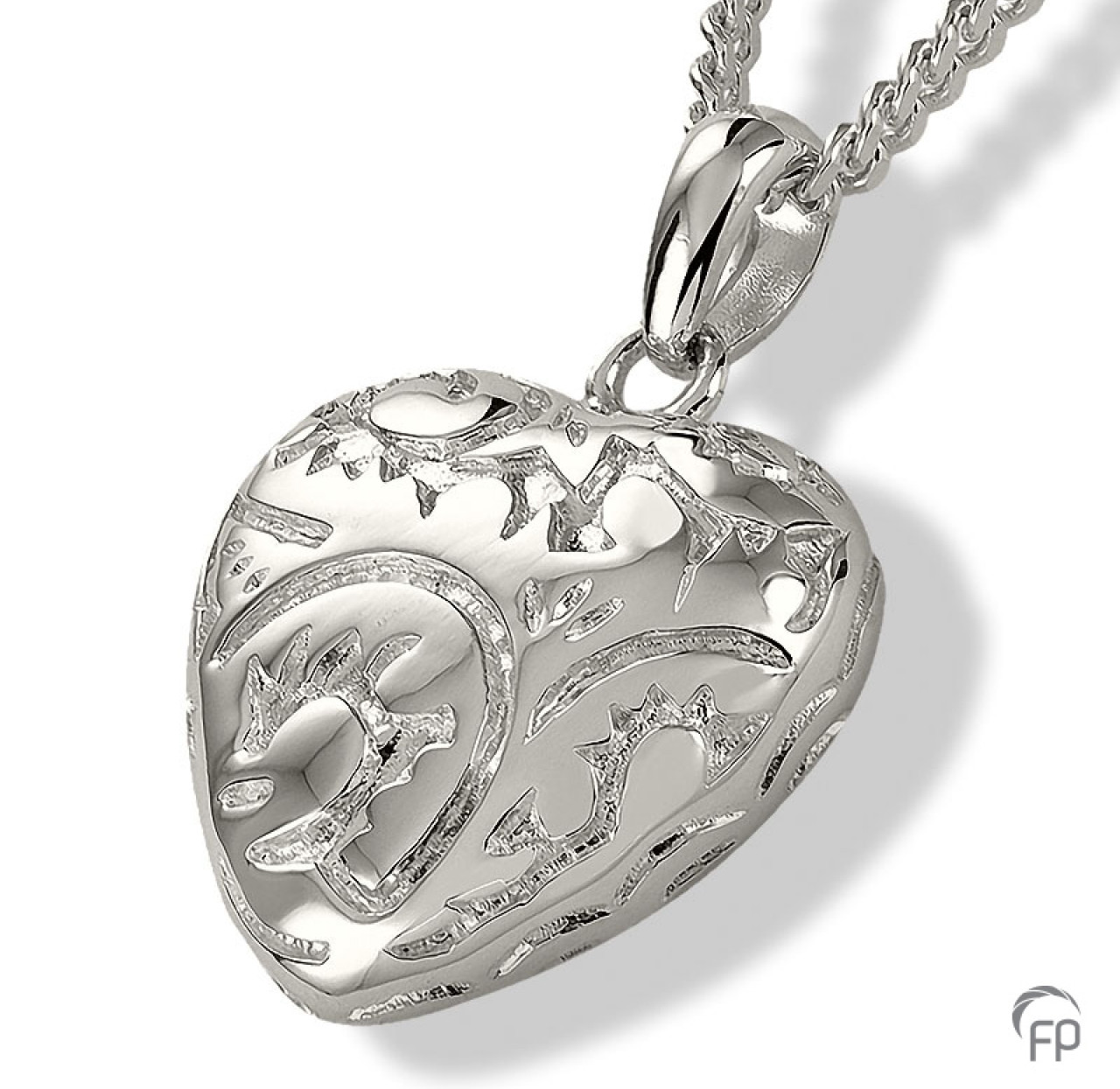 Het assieraad Hanger Bewerkt Hartje is met de hand gemaakt en is zeer gedetailleerd. Kenmerkend voor dit sieraad is dan ook de perfecte afwerking, waardoor deze niet direct herkenbaar is als ashouder. Dit sieraad is vervaardigd uit hoogwaardig Sterling zilver. Wij vullen het sieraad voor u met het door u meegebrachte as en zorgen voor een perfecte afsluiting. Zo heeft u een tastbare herinnering aan uw dierbare, die u altijd bij u kunt dragen, want de hanger is geschikt voor dagelijks gebruik. De afmeting is 2,3 cm hoog en is, op bestelling, ook verkrijgbaar in geel- en witgoud. EUR 198,00 (exclusief collier)