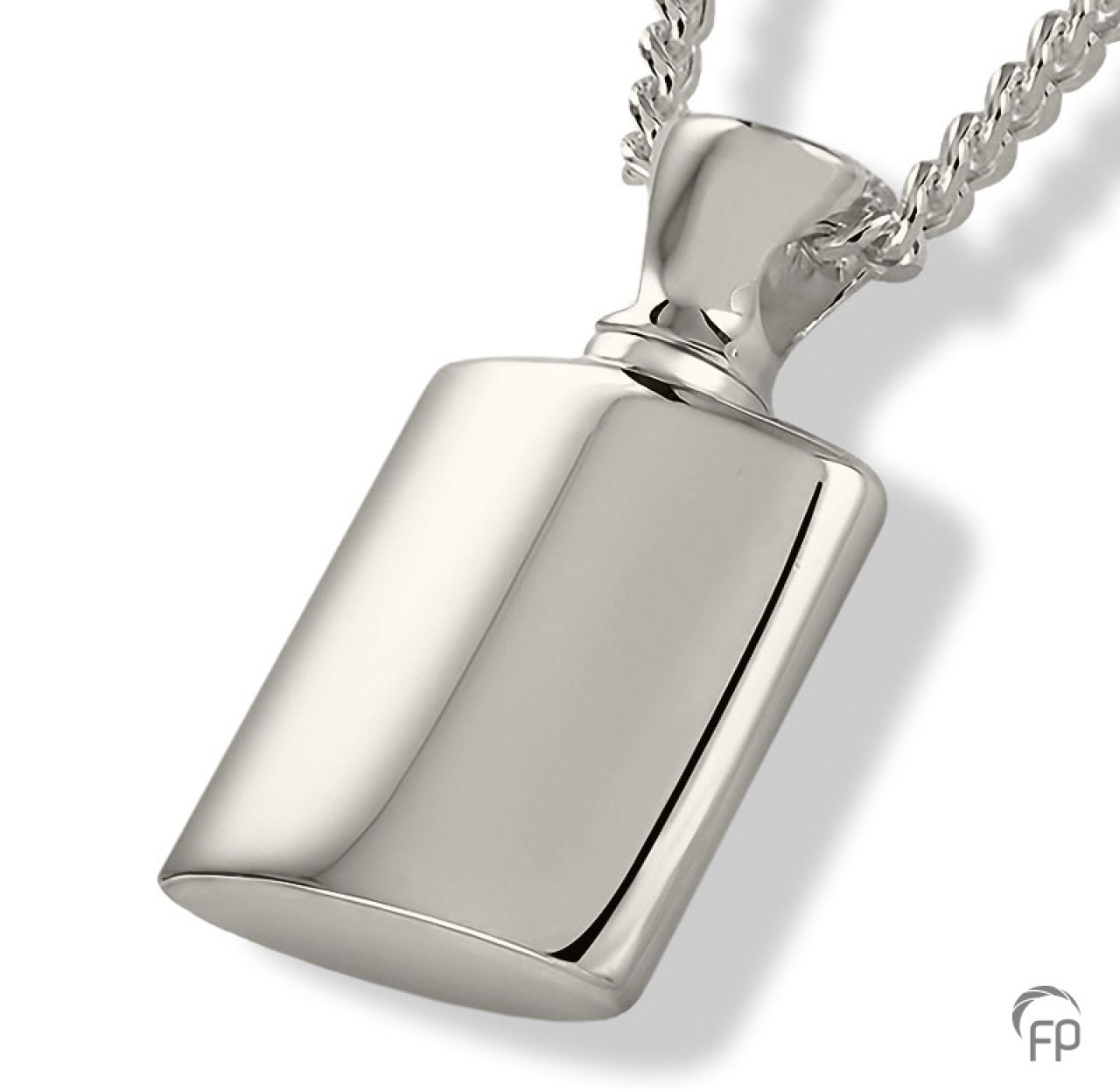 Het assieraad Hanger Flacon is met de hand gemaakt en is zeer gedetailleerd. Kenmerkend voor dit sieraad is dan ook de perfecte afwerking, waardoor deze niet direct herkenbaar is als ashouder. De hanger zit niet vast aan het collier, maar het collier loopt door het sieraad heen om een lange en veilige gebruiksduur te kunnen garanderen. Dit sieraad is vervaardigd uit hoogwaardig Sterling zilver. Wij vullen het sieraad voor u met het door u meegebrachte as en zorgen voor een perfecte afsluiting. Zo heeft u een tastbare herinnering aan uw dierbare, die u altijd bij u kunt dragen, want de hanger is geschikt voor dagelijks gebruik. De afmeting is 2,2 cm hoog en is, op bestelling, ook verkrijgbaar in geel- en witgoud. EUR 189,00 (inclusief vullen en exclusief collier)