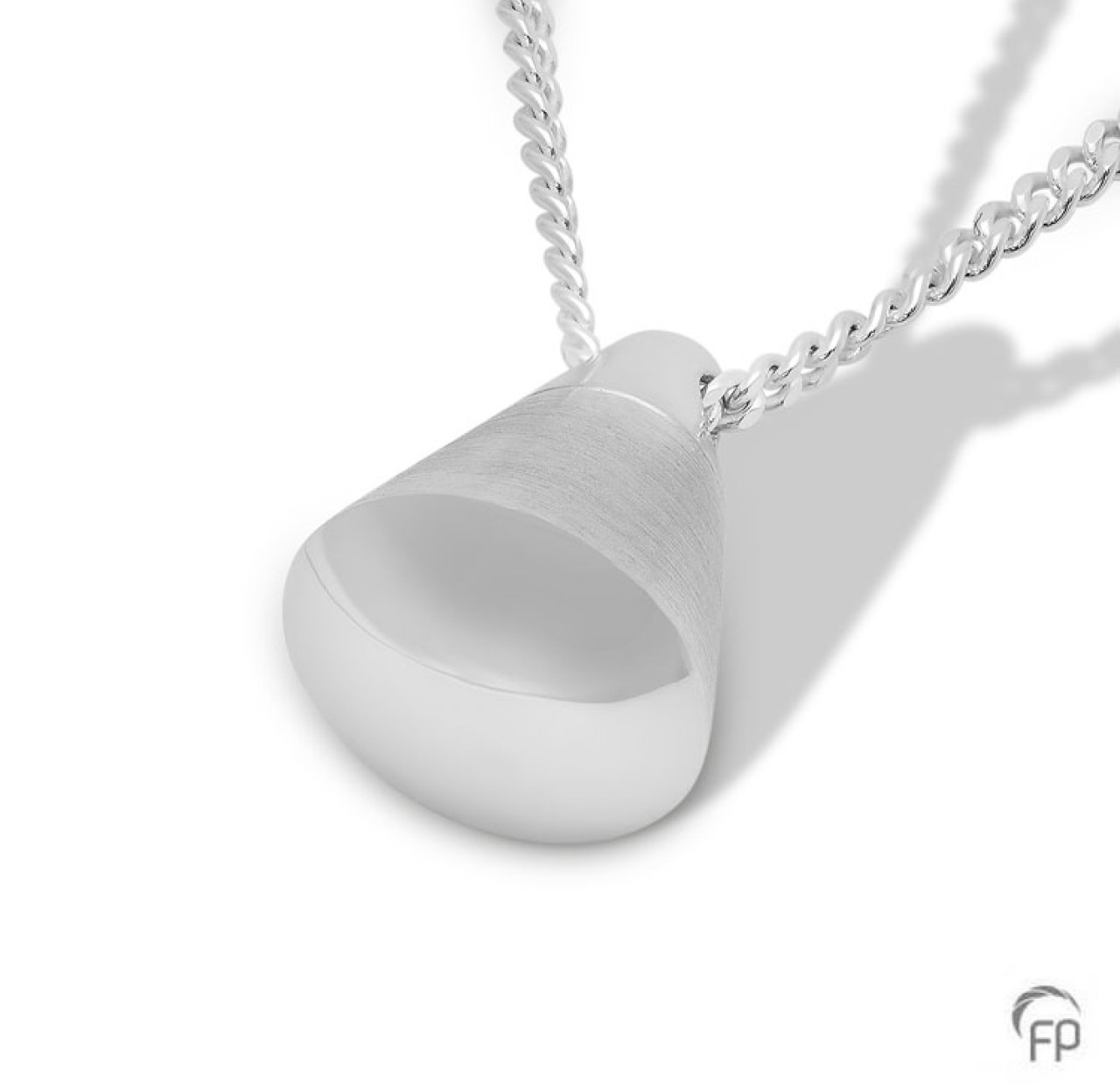 Het assieraad Hanger met Kegel ASAH118 is met de hand gemaakt en is zeer gedetailleerd. Kenmerkend voor dit sieraad is dan ook de perfecte afwerking, waardoor deze niet direct herkenbaar is als ashouder. Dit sieraad is vervaardigd uit hoogwaardig Sterling zilver. Wij vullen het sieraad voor u met het door u meegebrachte as en zorgen voor een perfecte afsluiting. Tevens zit de hanger of het bedeltje niet vast aan het collier, maar loopt deze door het sieraad heen om een lange en veilige gebruiksduur te kunnen garanderen. De afmeting is 1,8 cm hoog en is, op bestelling, ook verkrijgbaar in geel- en witgoud. EUR 190,00 (inclusief vullen en exclusief collier)