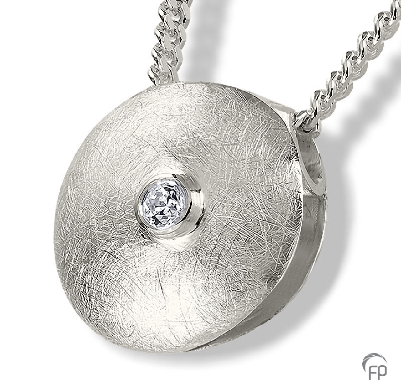 Het assieraad Hanger Schijf ASAH011 is met de hand gemaakt en is zeer gedetailleerd. Kenmerkend voor dit sieraad is dan ook de perfecte afwerking, waardoor deze niet direct herkenbaar is als ashouder. Dit sieraad is vervaardigd uit hoogwaardig Sterling zilver. Wij vullen het sieraad voor u met het door u meegebrachte as en zorgen voor een perfecte afsluiting. Tevens zit de hanger of het bedeltje niet vast aan het collier, maar loopt deze door het sieraad heen om een lange en veilige gebruiksduur te kunnen garanderen. De afmeting is 1,8 cm hoog en is, op bestelling, ook verkrijgbaar in geel- en witgoud. EUR 198,00 (exclusief collier)