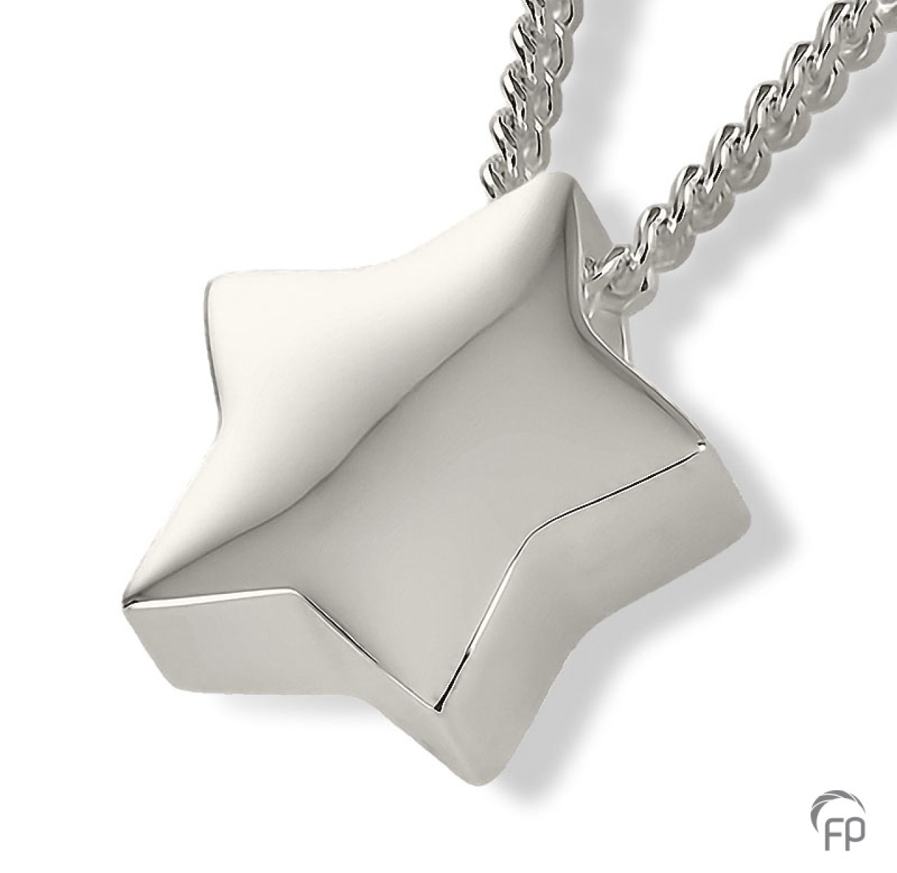 Het assieraad Hanger Ster is met de hand gemaakt en is zeer gedetailleerd. Kenmerkend voor dit sieraad is dan ook de perfecte afwerking, waardoor deze niet direct herkenbaar is als ashouder. De hanger zit niet vast aan het collier, maar het collier loopt door het sieraad heen om een lange en veilige gebruiksduur te kunnen garanderen. Dit sieraad is vervaardigd uit hoogwaardig Sterling zilver. Wij vullen het sieraad voor u met het door u meegebrachte as en zorgen voor een perfecte afsluiting. Zo heeft u een tastbare herinnering aan uw dierbare, die u altijd bij u kunt dragen, want de hanger is geschikt voor dagelijks gebruik. De afmeting is 1,6 cm hoog en is, op bestelling, ook verkrijgbaar in geel- en witgoud. EUR 155,00