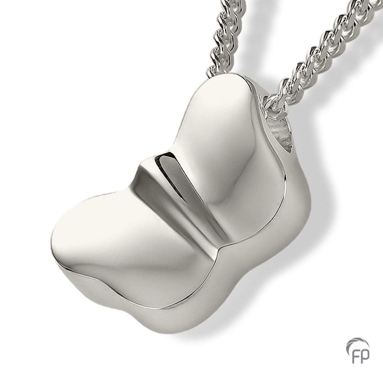 Het assieraad Hanger Vlinder is met de hand gemaakt en is zeer gedetailleerd. Kenmerkend voor dit sieraad is dan ook de perfecte afwerking, waardoor deze niet direct herkenbaar is als ashouder. De hanger zit niet vast aan het collier, maar het collier loopt door het sieraad heen om een lange en veilige gebruiksduur te kunnen garanderen. Dit sieraad is vervaardigd uit hoogwaardig Sterling zilver. Wij vullen het sieraad voor u met het door u meegebrachte as en zorgen voor een perfecte afsluiting. Zo heeft u een tastbare herinnering aan uw dierbare, die u altijd bij u kunt dragen, want de hanger is geschikt voor dagelijks gebruik. De afmeting is 1,9 cm hoog en is, op bestelling, ook verkrijgbaar in geel- en witgoud. EUR 181,00 (exclusief collier)