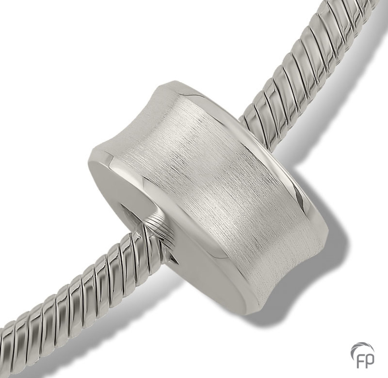 Het assieraad Asbedel armband ASMB002 is met de hand gemaakt en is zeer gedetailleerd. Kenmerkend voor dit sieraad is dan ook de perfecte afwerking, waardoor deze niet direct herkenbaar is als ashouder. Dit sieraad is vervaardigd uit hoogwaardig Sterling zilver. Wij vullen het sieraad voor u met het door u meegebrachte as en zorgen voor een perfecte afsluiting. Zo heeft u een tastbare herinnering aan uw dierbare. De afmeting is 1,4 cm hoog en is, op bestelling, ook verkrijgbaar in geel- en witgoud. EUR 144,00 (exclusief armband)