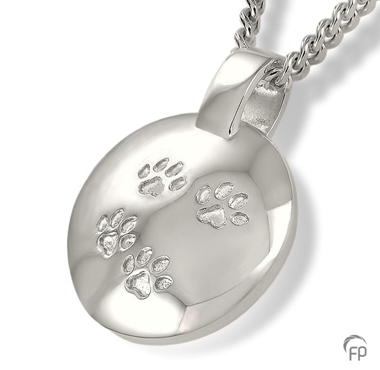 Het Dieren assieraad ASDH201 is met de hand gemaakt en is zeer gedetailleerd. Kenmerkend voor dit sieraad is dan ook de perfecte afwerking, waardoor deze niet direct herkenbaar is als ashouder. Dit sieraad is vervaardigd uit hoogwaardig Sterling zilver. Wij vullen het sieraad voor u met het door u meegebrachte as en zorgen voor een perfecte afsluiting. Tevens zit de hanger of het bedeltje niet vast aan het collier, maar loopt deze door het sieraad heen om een lange en veilige gebruiksduur te kunnen garanderen. De afmeting is 2,3 cm hoog en is, op bestelling, ook verkrijgbaar in geel- en witgoud. EUR 129,00 (exclusief vullen en exclusief collier)