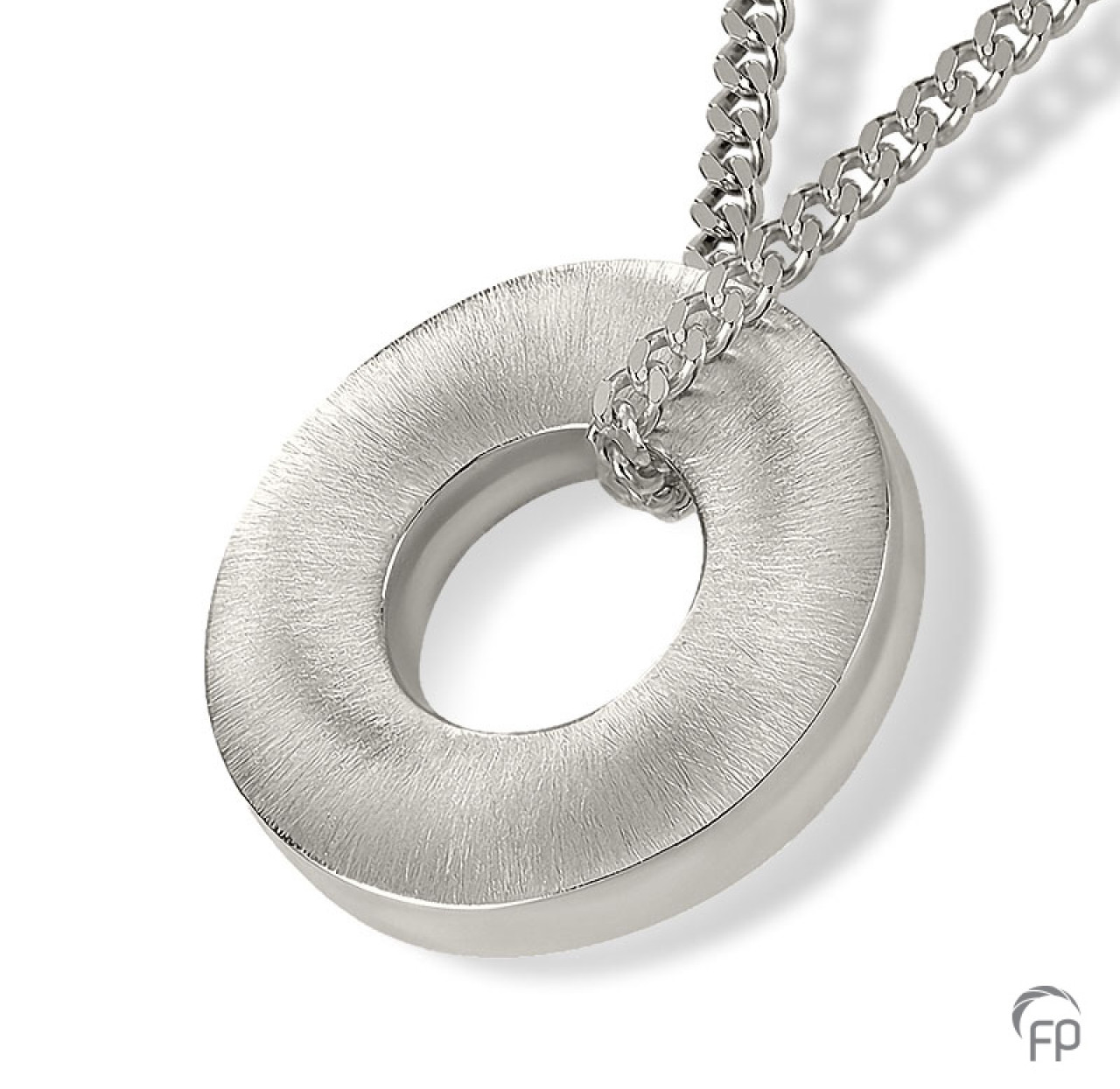 Het assieraad Hanger Eeuwig Rond is met de hand gemaakt en is zeer gedetailleerd. Kenmerkend voor dit sieraad is dan ook de perfecte afwerking, waardoor deze niet direct herkenbaar is als ashouder. De hanger zit niet vast aan het collier, maar het collier loopt door het sieraad heen om een lange en veilige gebruiksduur te kunnen garanderen. Dit sieraad is vervaardigd uit hoogwaardig Sterling zilver. Wij vullen het sieraad voor u met het door u meegebrachte as en zorgen voor een perfecte afsluiting. Zo heeft u een tastbare herinnering aan uw dierbare, die u altijd bij u kunt dragen, want de hanger is geschikt voor dagelijks gebruik. De afmeting is 2,1 cm hoog en is, op bestelling, ook verkrijgbaar in geel- en witgoud. EUR 190,00 (inclusief vullen en exclusief collier)