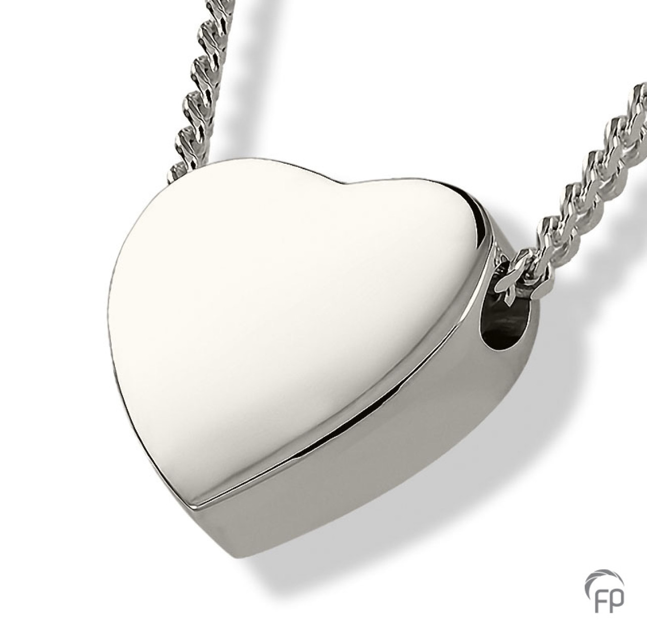 Het assieraad Hanger Hartje is met de hand gemaakt. Kenmerkend voor dit sieraad is dan ook de perfecte afwerking, waardoor deze niet direct herkenbaar is als ashouder. De hanger zit niet vast aan het collier, maar het collier loopt door het sieraad heen om een lange en veilige gebruiksduur te kunnen garanderen. Dit sieraad is vervaardigd uit hoogwaardig Sterling zilver. Wij vullen het sieraad voor u met het door u meegebrachte as en zorgen voor een perfecte afsluiting. Zo heeft u een tastbare herinnering aan uw dierbare, die u altijd bij u kunt dragen, want de hanger is geschikt voor dagelijks gebruik. De afmeting is 1,7 cm hoog en is, op bestelling, ook verkrijgbaar in geel- en witgoud. EUR 155,00 (exclusief collier)