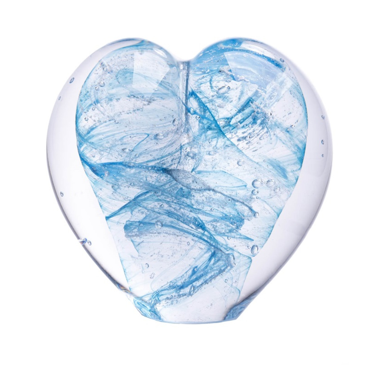 Glasobject met as meegeblazen in de vorm van een staand hart. Het hart kan in diverse kleuren of een mix daarvan uitgevoerd worden. Ook kunt u ervoor kiezen om alleen het as mee te laten blazen zonder kleur. Een prachtig symbool, hier afgebeeld in de tint lichtblauw. Hoogte is ongeveer 13 cm hoog. Levert u het as bij ons aan en wij zorgen ervoor dat dit prachtige as-object voor u op maat gemaakt wordt. Bezoekt u ook onze showroom om onze uitgebreide collectie te bekijken! Prijs EUR 316,00
