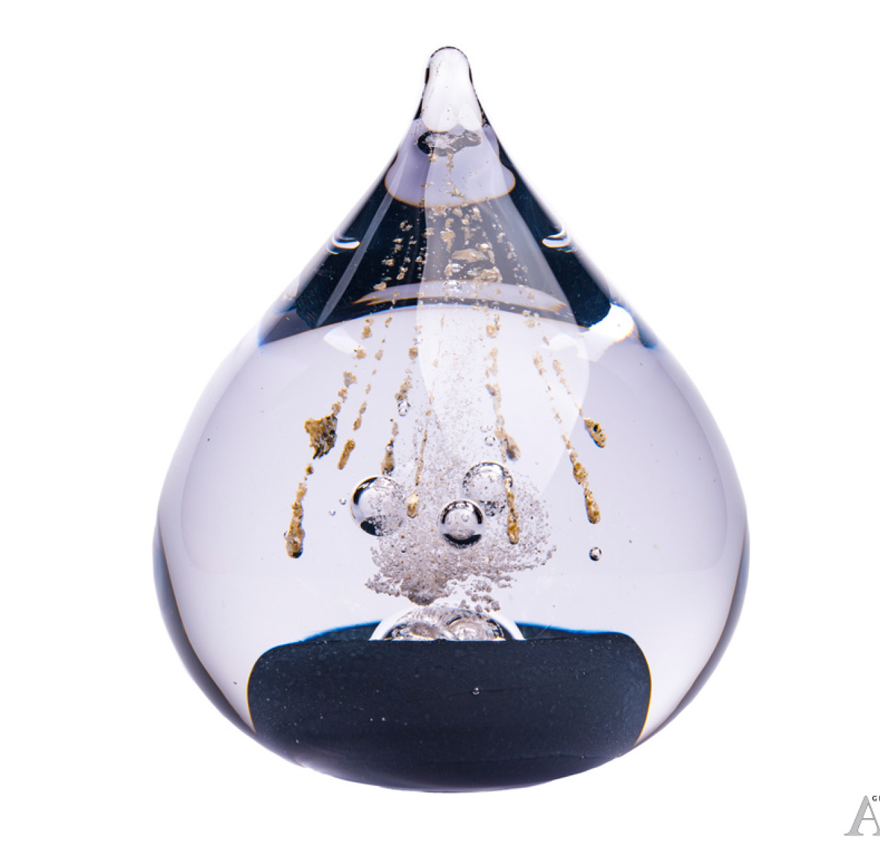 De Rhea is een glasobject met as meegeblazen in de vorm van een druppel/traan. Het glasreliek Rhea kenmerkt zich door de diverse slierten as die vanuit de punt naar beneden lopen. Vanuit het midden van de Rhea dwarrelt het as omhoog. De onderzijde is gevuld met kleur (diverse kleuren zijn mogelijk). De afmeting van de Rhea is ongeveer 12 x 10 cm . U kunt de as bij ons aanleveren en wij zorgen ervoor dat dit prachtige as-object voor u op maat gemaakt wordt. Prijs EUR 310,00