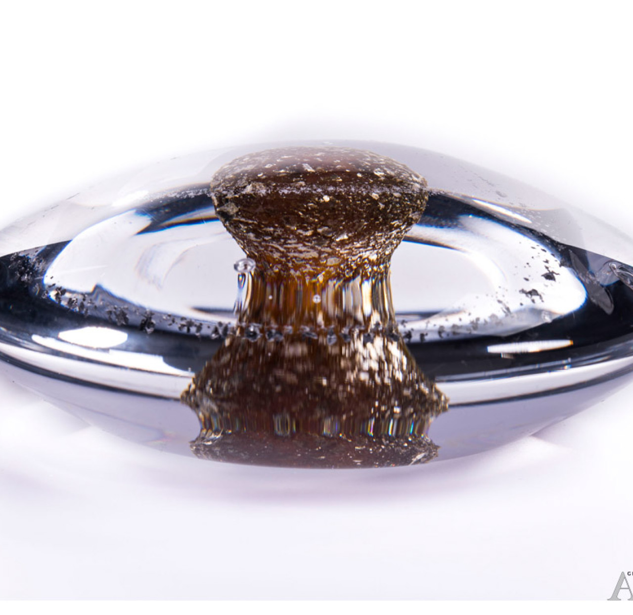 Glasobject met as meegeblazen 'Verbinding' heeft een schijfachtige vormgeving. Middenin deze schijf verbindt een kolom van as de onderzijde met de bovenzijde. Rondom deze kolom zweven asdeeltjes. Dit object kan uiteraard ook met kleur worden uitgevoerd. De afmetingen van dit gedenkartikel zijn ongeveer 12 x 5 cm. Het as kunt u bij ons aanleveren en wij zorgen ervoor dat dit prachtige as-object voor u op maat gemaakt wordt. Prijs EUR 297,00