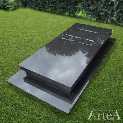 Fraai grafmonument met glazen tekstplaat. De glazen tekstplaat op dit grafmonument geeft het geheel een stijlvolle uitstraling. Mooie woorden in een letterplaat maken een gedenkplek waardig. U kunt bij de medewerkers van Artea ook terecht voor hulp bij het bedenken van persoonlijke teksten. Prijs vanaf EUR 4295,00 inclusief plaatsing