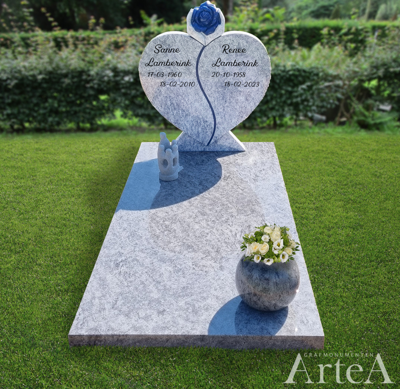 Wij willen Artea hartelijk danken voor de prettige samenwerking. We kwamen binnen en wisten echt niet wat we wilden. Met hun kundige begeleiding is onze grafsteen tot stand gekomen.