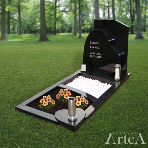 Zeer mooi uitgevoerd kindermonument met vlinder en rups. Heel apart is de kleur van de letters. Wilt u liever een andere kleur letters, laat u dan adviseren door Artea Grafmonumenten. Prijs vanaf EUR 2.595,00 inclusief plaatsing.