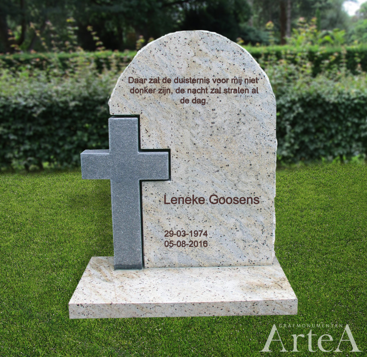 Wij willen Artea hartelijk danken voor de prettige samenwerking. We kwamen binnen en wisten echt niet wat we wilden. Met hun kundige begeleiding is onze grafsteen tot stand gekomen.