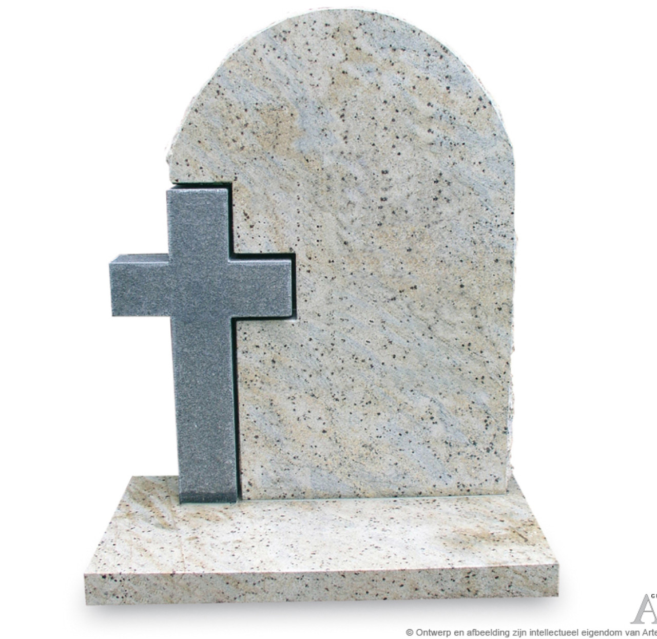 Mooi ontworpen urnmonument met kruis. Hier uitgevoerd met een Premium Black kruis (gezoet) en een lichte granietsoort. Prijs vanaf EUR 2.150 inclusief plaatsing