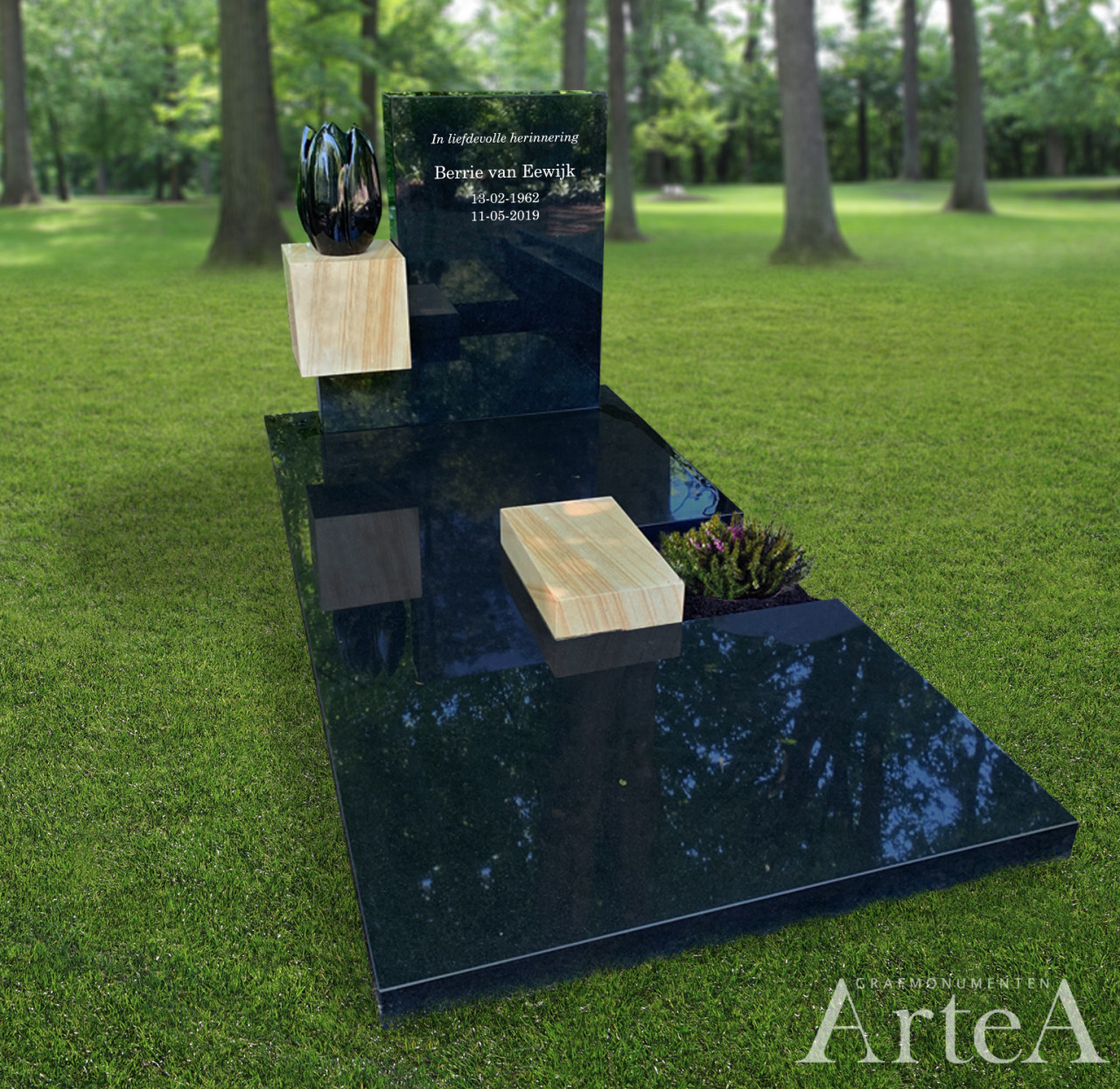 Wij willen Artea hartelijk danken voor de prettige samenwerking. We kwamen binnen en wisten echt niet wat we wilden. Met hun kundige begeleiding is onze grafsteen tot stand gekomen.