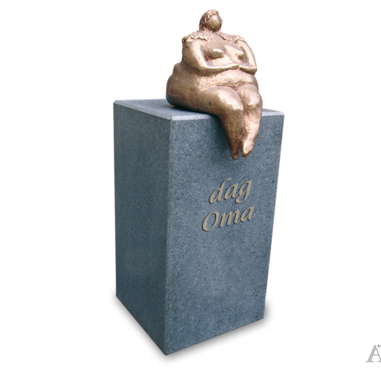 Bijzondere urn: een zuil van graniet met een bronsbeeld. U kunt ervoor kiezen om het as in de zuil te bewaren, maar het kan ook in het beeld.