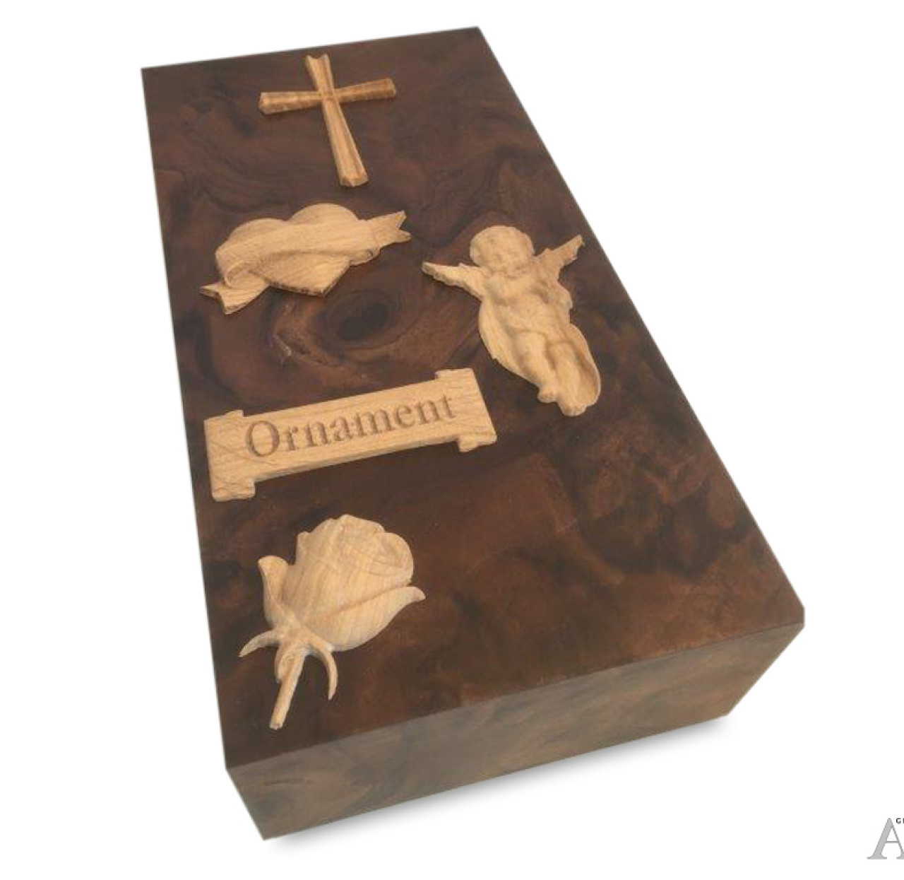 Deze houten accessoires zijn toe te passen op de houten urnen uit ons assortiment. Deze ornamenten zijn in verschillende vormen te verkrijgen. Denkt u aan bijvoorbeeld kruizen, harten of bloemen . De afwerking is perfect en elk ornament is vakkundig gemaakt. Prijs vanaf EUR 120,00 (inclusief bevestigen)
