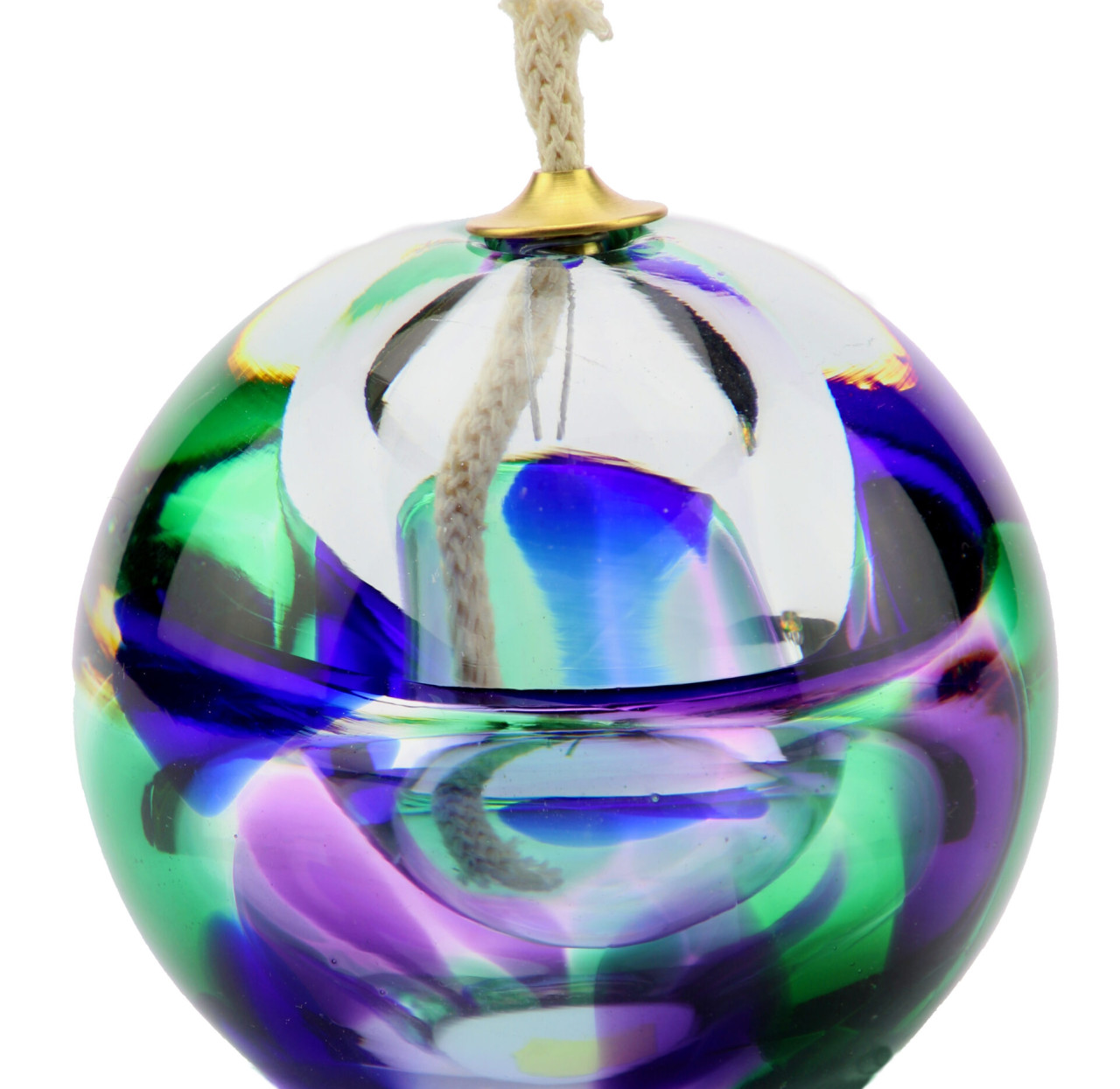 Dit As-olielampje heeft paars/groen/blauw glas en heeft een klein as-reservoir waar een gedeelte van het crematie-as in bewaard kan worden. Het as-reservoir wordt afgesloten d.m.v. een zelf-hechtend sluitplaatje. De crematie-as is zichtbaar. Dit olielampje is met de hand gemaakt van kristalglas en afgewerkt met sierlijke lijnen. Dit maakt elk ornament uniek. Het olielampje is leverbaar in één maat: 8 cm hoog/inhoud 80 ml. Het olielampje is een lieflijk aandenken ter herinnering aan uw dierbare. Bezoek ook onze showroom en bekijk onze uitgebreide collectie sierurnen. Prijs EUR 87,00 (inclusief vullen en afsluiten)