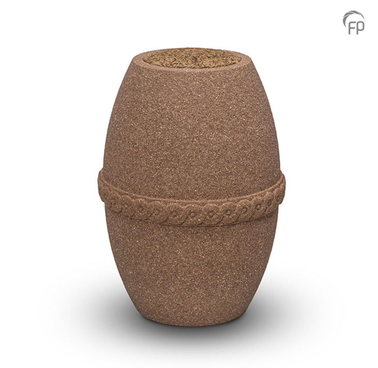 De biologische urn Arenae is met de hand vervaardigd uit natuurlijk organische materialen, waardoor deze volledig biologisch afbreekbaar is. De producent heeft plantaardige of minerale grondstoffen gebruikt uit de natuur. Zodoende kan de as op een symbolische en milieuvriendelijke manier terug worden toevertrouwd aan de natuur. De Ocean is een zouturn welke compleet oplosbaar is. De urn is speciaal ontwikkeld voor het verstrooien van as op zee. Deze urn heeft een inhoud van 3,00 liter en is 27 cm hoog. EUR 159,00