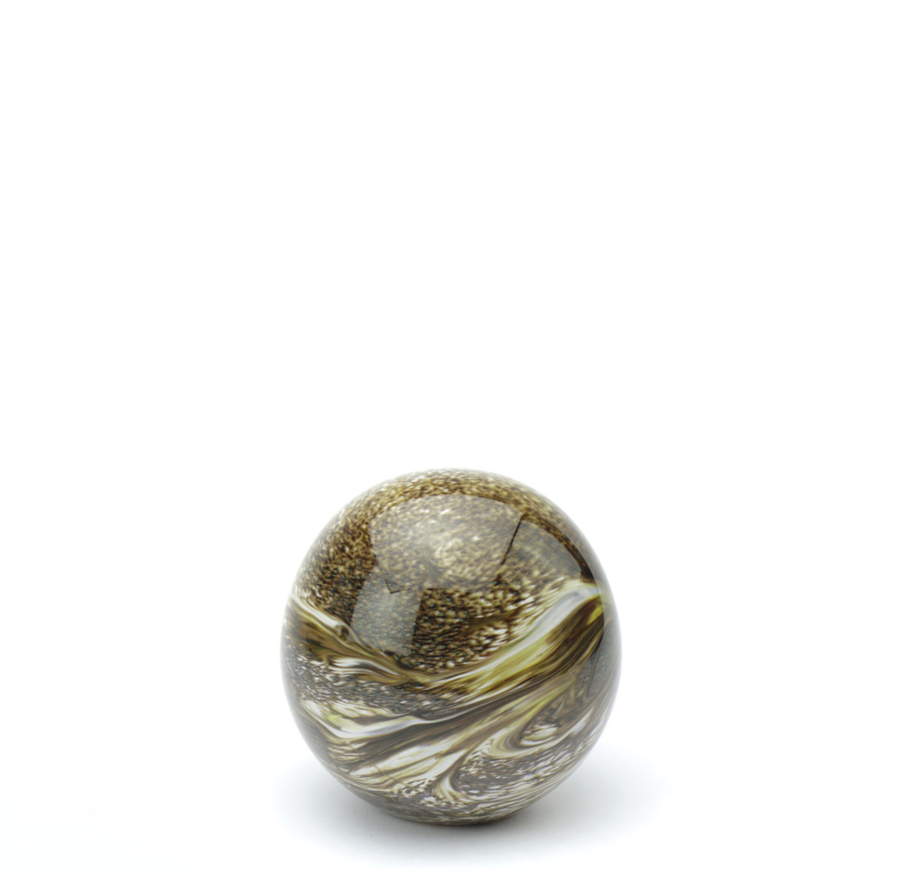 De urn Elements Bulb Marble Earth is geïnspireerd op de 4 elementen uit de natuur: aarde, water, lucht en vuur. Deze urn uit de Elan-line vertegenwoordigt een collectie as-gedenkornamenten met voornamelijk ronde vormen en zijn verkrijgbaar in diverse kleurcombinaties. Aan de binnenzijde van de urn bevindt zich een as-reservoir waar al het crematie-as in bewaard kan worden. Deze urn wordt afgesloten d.m.v. een zelf-hechtende sluitplaat. De urn is niet transparant dus het crematie-as is niet zichtbaar. Deze urn is leverbaar in één maat: 8 cm/0,1 ltr. Deze, met de hand vervaardigde urn, is een waar kunstwerk ter herinnering aan uw dierbare. Prijs EUR 139,00 (inclusief vullen)