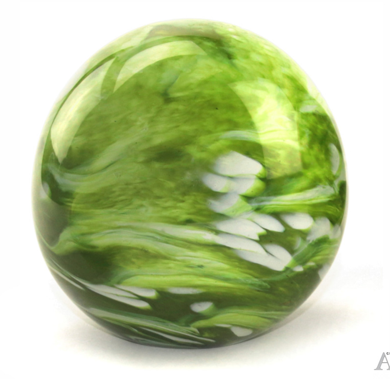 De urn Elements Bulb Marble Green is geïnspireerd op de 4 elementen uit de natuur: aarde, water, lucht en vuur. Deze urn uit de Elan-line vertegenwoordigt een collectie as-gedenkornamenten met voornamelijk ronde vormen en zijn verkrijgbaar in diverse kleurcombinaties. Deze bolvormige urn heeft een basiskleur groen met een vleugje wit. Aan de binnenzijde van de urn bevindt zich een as-reservoir waar al het crematie-as in bewaard kan worden. Deze urn wordt afgesloten d.m.v. een zelf-hechtende sluitplaat. De urn is niet transparant dus het crematie-as is niet zichtbaar. Deze urn is leverbaar in 3 maten: 15 cm/1,5 ltr., 12 cm/0,5 ltr. en 8 cm/0,1 ltr. Deze, met de hand vervaardigde urn, is een waar kunstwerk ter herinnering aan uw dierbare. Prijs EUR 196,00 / EUR 176,00 / EUR 139,00 (exclusief vullen)