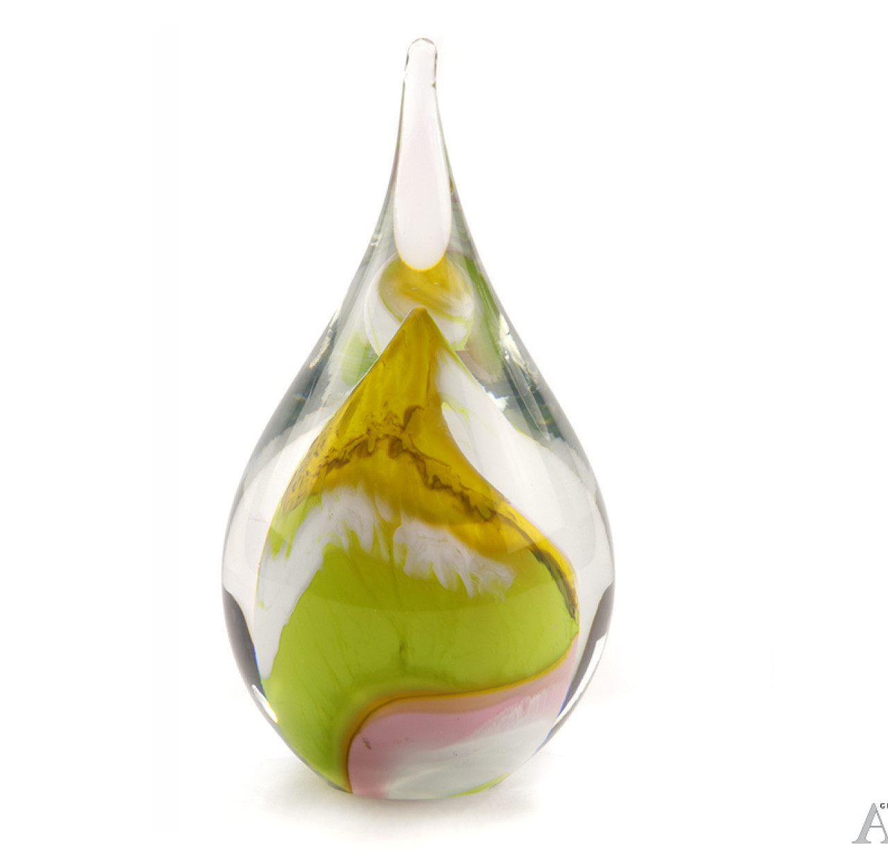 De kleine Glasdruppel in sweet colours gevlamd heeft de vorm van een kleine sierlijke druppel. In de kern van de as-druppel bevindt zich een klein as-reservoir waar een gedeelte van het crematie-as in bewaard kan worden. Het as-reservoir wordt afgesloten d.m.v. een zelf-hechtend sluitplaatje. Deze druppel is niet transparant en het crematie-as is dus niet zichtbaar. In combinatie met de warme kleurschakeringen krijgt het as-gedenkornament een extra dimensie en een prachtige uitstraling. Deze kleine glasdruppel is verkrijgbaar in een aantal verschillende kleurschakeringen. Ze zijn gemaakt van kristalglas en met de hand vervaardigd. Dit maakt elk ornament uniek. De glasdruppel is leverbaar in één maat: 14 cm hoog/inhoud 50 ml. De glasdruppel is een lieflijk aandenken ter herinnering aan uw dierbare. Bezoek ook onze showroom en bekijk onze uitgebreide collectie sierurnen. Prijs EUR 83,00