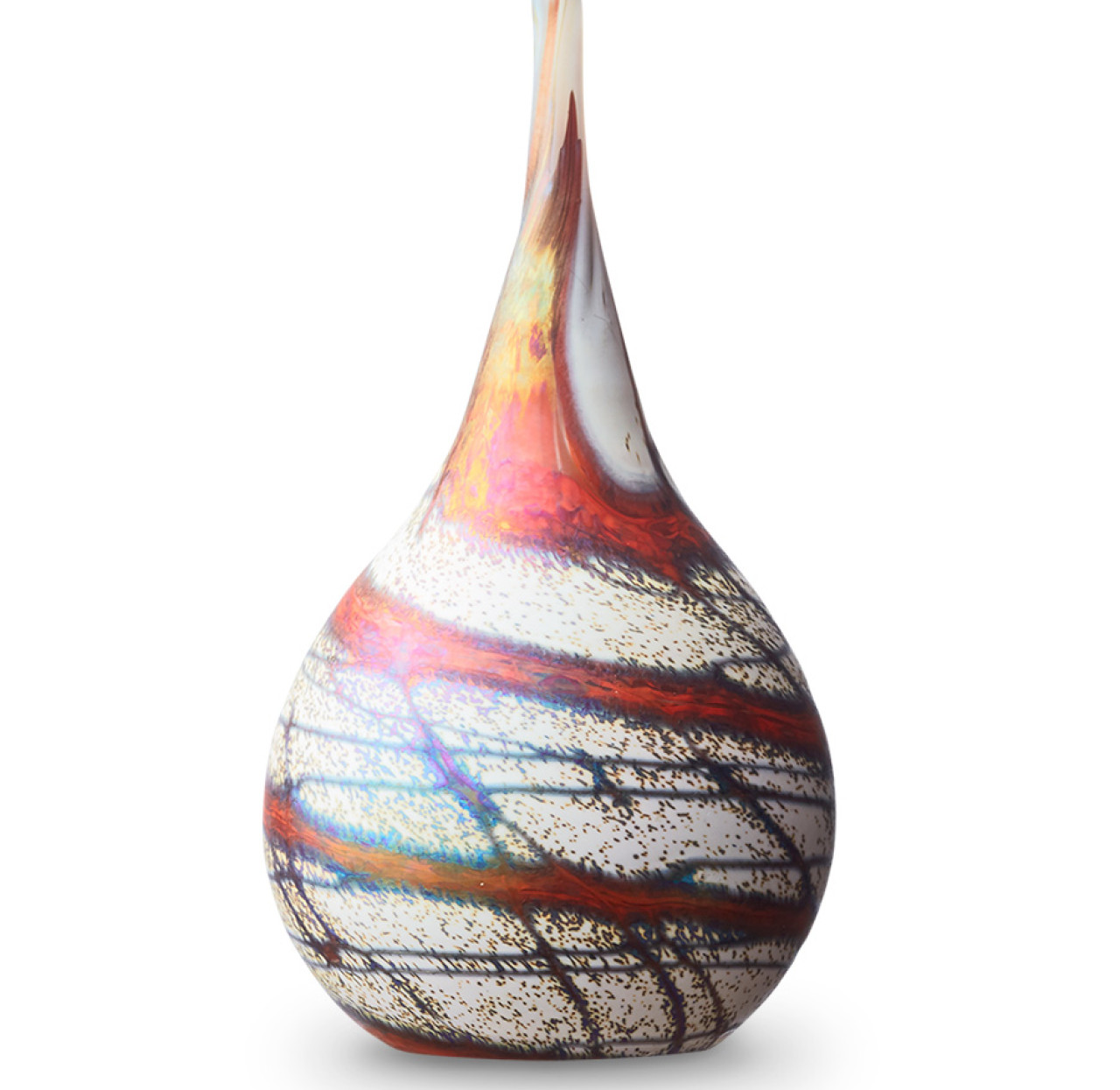 De Terra druppel is een klein sierlijk as-gedenkornament in de vorm van een druppel. Dit prachtige as-gedenkornament heeft als basis een streep patroon gecombineerd met aardekleuraccenten. Aan de binnenzijde bevindt zich een as-reservoir waar een gedeelte van het crematie-as in bewaard kan worden. Het as-reservoir wordt afgesloten d.m.v. een zelf-hechtende sluitplaat. Het as-gedenkornament is niet transparant dus het crematie-as is niet zichtbaar. De afmeting is 12 cm/60 ml. Alle as-gedenkornamenten zijn van kristalglas en met de hand vervaardigd. Dit maakt elk ornament uniek. Prijs EUR 139,00 (inclusief vullen)