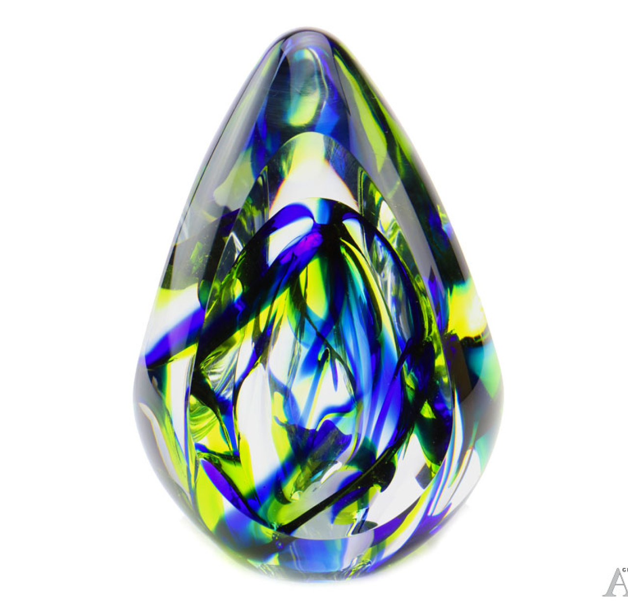 Glaskegel Aurora blauw is een prachtig as-gedenkornament en is van kristalglas gemaakt. De kleur is een zweem van groen en blauw. Deze urn is ook te verkrijgen in een variant met alleen groen/geel tinten. D.m.v. een zelf-hechtende sluitplaat is het as-reservoir afgesloten. Deze urn is leverbaar in één maat: 13 cm/70 ml. Deze glaskegel is een waar sieraad ter herinnering van uw dierbare. Alle as-gedenkornamenten zijn met de hand vervaardigd, zo is elk ornament uniek. Prijs EUR 336,00 (inclusief vullen en afsluiten)
