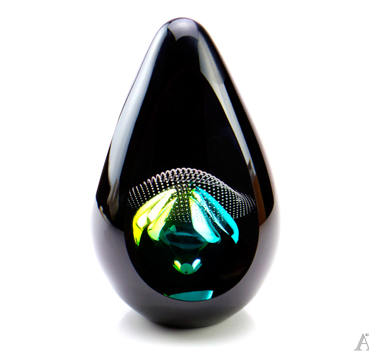 Glaskegel Pandora geel/groen is een prachtige as-gedenkornament en is van kristalglas gemaakt. De kleur is zwart en de kern is geel/groen met een sluier als van parels. D.m.v. een zelf-hechtende sluitplaat is het as-reservoir afgesloten. Deze urn is leverbaar in één maat: 14 cm/70 ml. Deze glaskegel is een waar sieraad ter herinnering van uw dierbare. Alle as-gedenkornamenten zijn met de hand vervaardigd, zo is elk ornament uniek. Prijs EUR 336,00 (inclusief vullen en afsluiten)