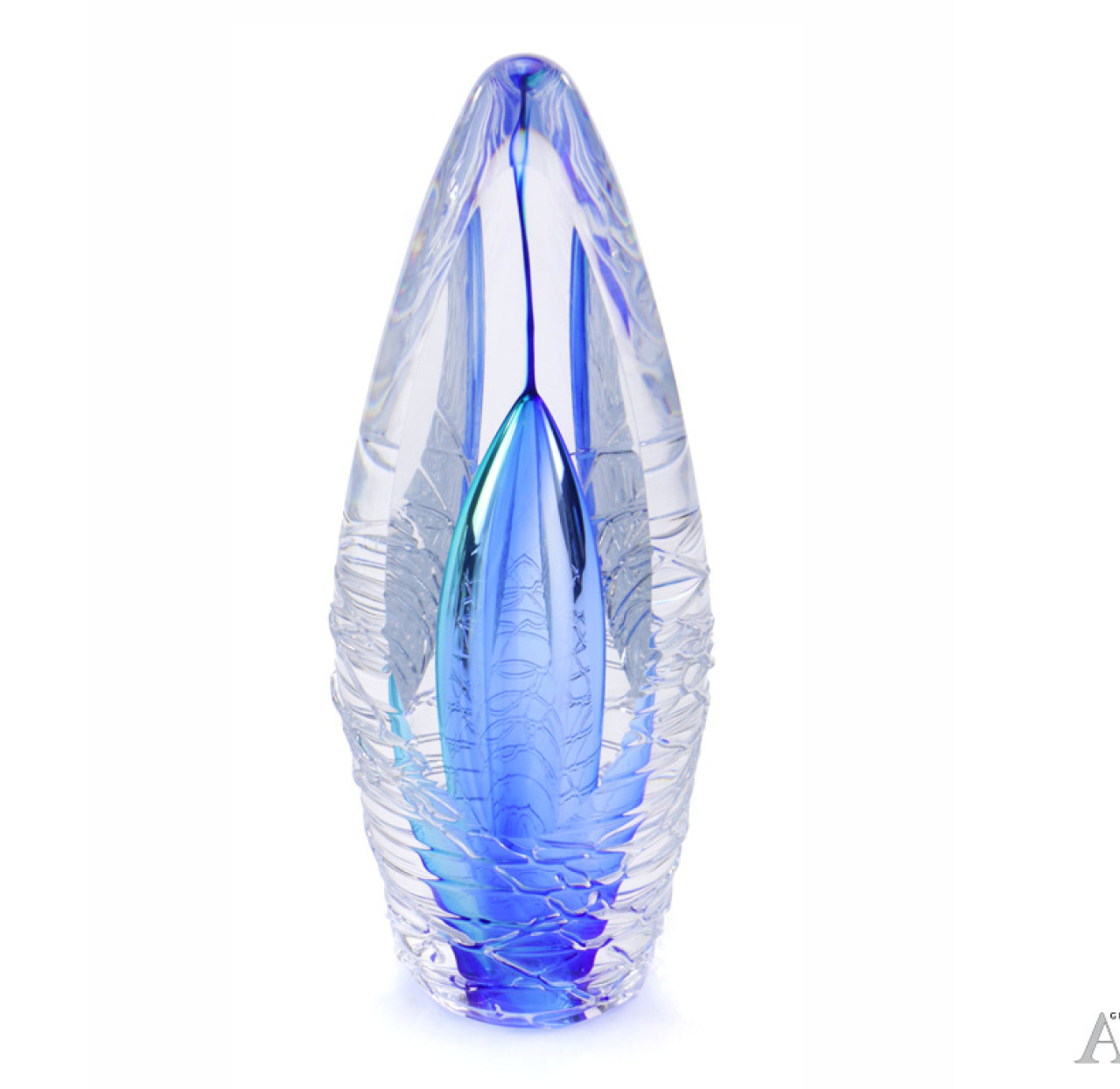 Glaskegel Spirit glans blauw is een prachtige as-gedenkornament en is van kristalglas gemaakt. De kleur van de kern is blauw. D.m.v. een zelf-hechtende sluitplaat is het as-reservoir afgesloten. Deze urn is leverbaar in één maat: 19 cm/70 ml. Deze glaskegel is een waar sieraad ter herinnering van uw dierbare. Alle as-gedenkornamenten zijn met de hand vervaardigd, zo is elk ornament uniek. Prijs EUR 336,00 (inclusief vullen en afsluiten)