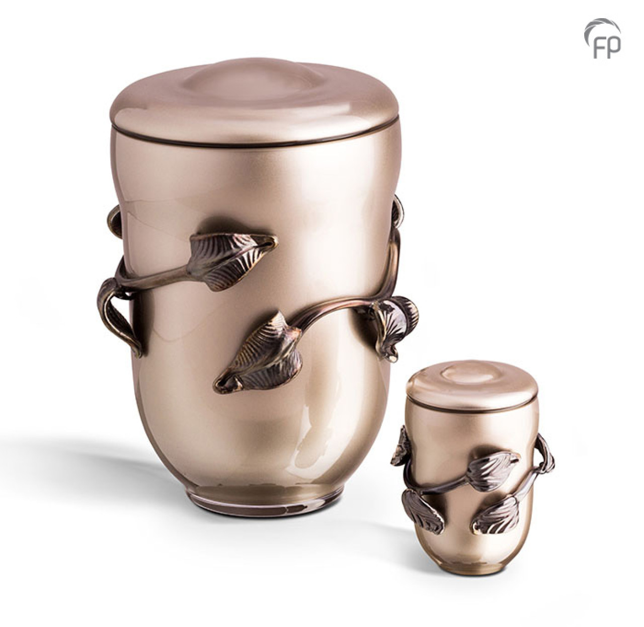 Deze glazen urn is handgeblazen en is van Boheems Kristal. De kleur is cappucino en de afwerking is hoogglans. Deze sierurn heeft een bladversiering die eveneens in kristal is uitgevoerd. De urn is leverbaar in twee maten: 3,8 liter/30 cm hoog en 0,4 liter/13 cm hoog. Een prachtig symbool om uw geliefde in te gedenken. Bezoek ook onze showroom en bekijk onze uitgebreide collectie sierurnen. Prijs EUR 330,00/EUR 199