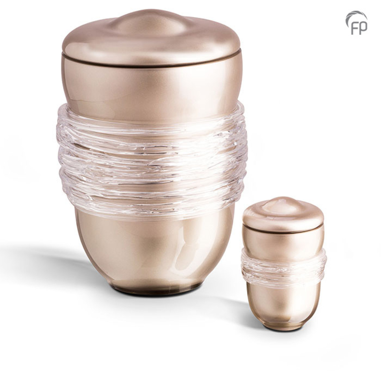Deze glazen urn is handgeblazen en is van Boheems Kristal. De kleur is cappuccino en de afwerking is hoogglans. Deze sierurn heeft een koordversiering die eveneens in kristal is uitgevoerd. De urn is leverbaar in de maat: 3,8 liter/30 cm hoog. Een prachtig symbool om uw geliefde in te gedenken. Bezoek ook onze showroom en bekijk onze uitgebreide collectie sierurnen. Prijs EUR 330,00