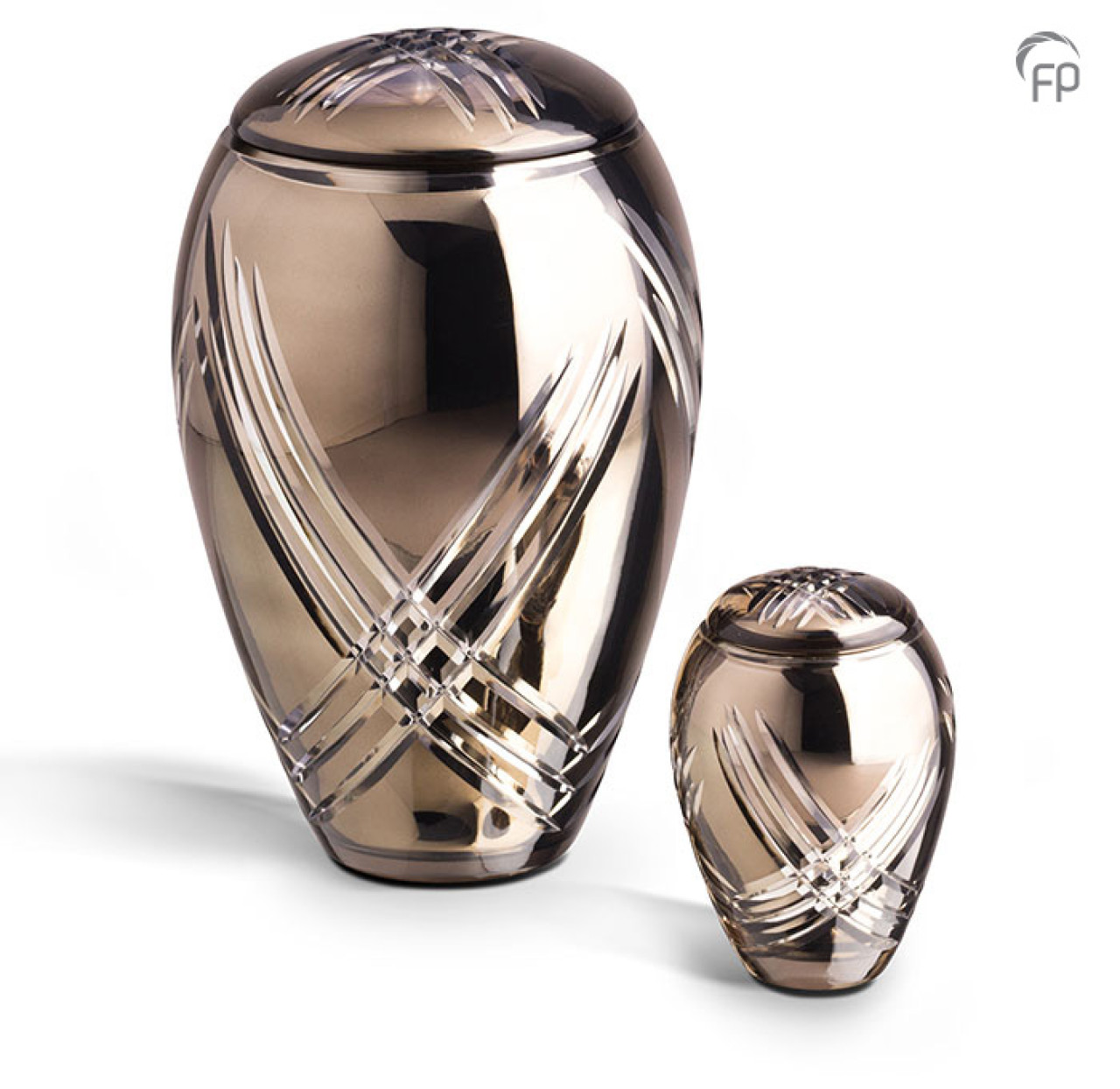 Deze glazen urn is handgeblazen en is van Boheems Kristal. De kleur is grijs en de afwerking is hoogglans. Deze sierurn heeft een geslepen decoratie. De urn is slechts leverbaar in één maat: 0,4 liter/13 cm hoog. Een prachtig symbool om uw geliefde in te gedenken. (Helaas is de grote maat, die op de afbeelding staat, niet meer leverbaar). Bezoek ook onze showroom en bekijk onze uitgebreide collectie sierurnen. Prijs EUR 199,00