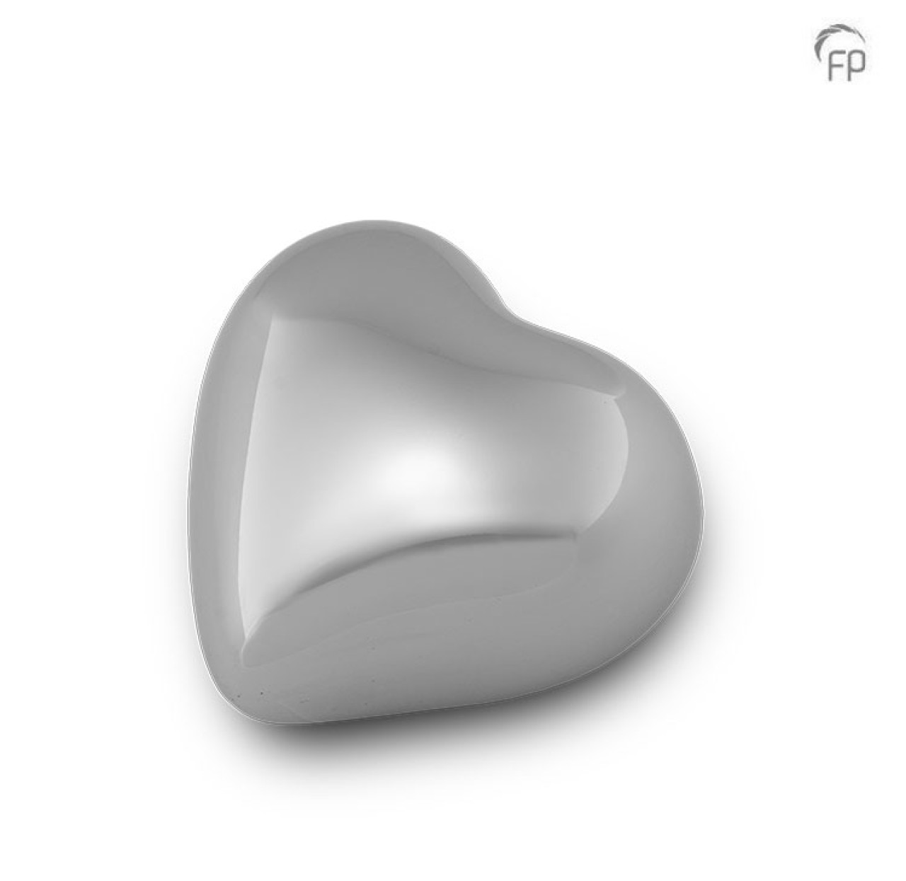 In dit metalen hart zilver/glans komt de prachtige vormgeving, hoogwaardige afwerking en vakmanschap samen. Het urntje is voorzien van een speciale laklaag die het product langdurig beschermt. Zo heb je een hoogwaardig en bovenal eerlijk product in handen. Met liefde gemaakt, om met liefde door te geven aan hen die er niet meer zijn. Deze urn heeft een inhoud van 0,08 ltr en een afmeting van 7 cm. Prijs: EURO 89,00 (exclusief vullen)