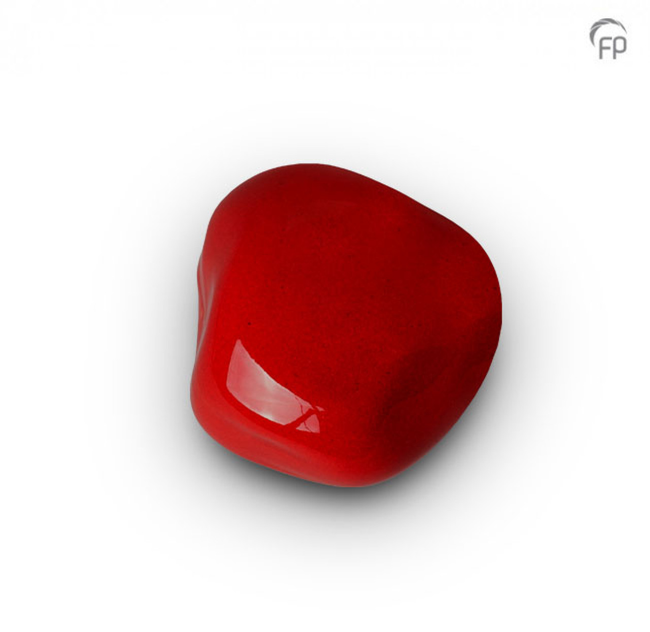 Dit Keramische Knuffelkeitje is rood glanzend en door een keramist van klei geboetseerd en vervolgens geëmailleerd. Het keitje is ongeveer 6x5x2 cm groot en heeft een inhoud van 0,05 liter. Een mooi symbool om uw geliefde te gedenken. Deze mini urn kan ook uitgevoerd worden in andere kleuren. Bezoek ook onze showroom en bekijk onze uitgebreide collectie sierurnen. Prijs EUR 59,00