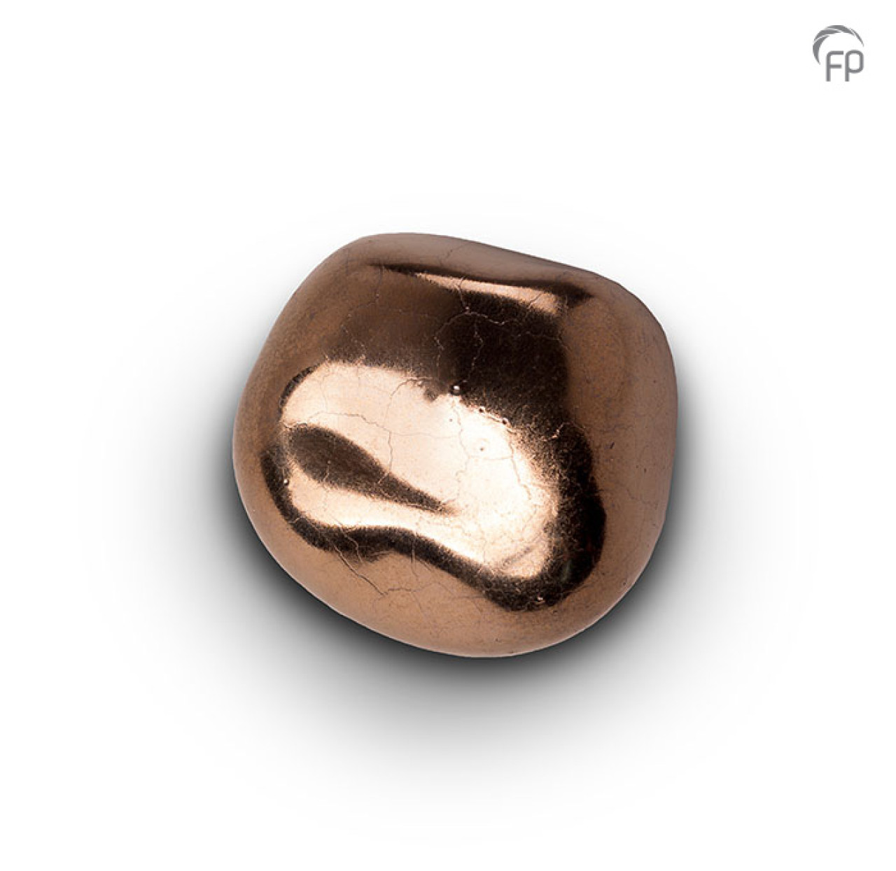 Dit Keramische Knuffelkeitje is brons/goudkleurig en is door een keramist van klei geboetseerd en vervolgens geëmailleerd. Het keitje is ongeveer 6x5x2 cm groot en heeft een inhoud van 0,05 liter. Een mooi symbool om uw geliefde te gedenken. Deze mini urn kan ook uitgevoerd worden in andere kleuren. Bezoek ook onze showroom en bekijk onze uitgebreide collectie sierurnen. Prijs EUR 59,00