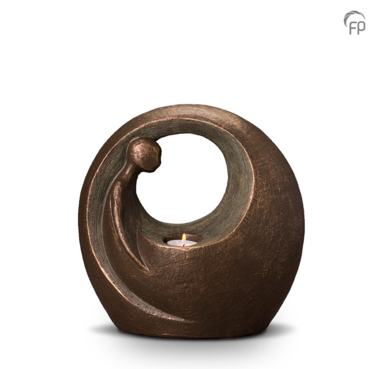 Deze keramische urn 'Eenzaam, maar niet Alleen' is een urn met een symbolieke betekenis. Deze urn wordt met de hand gemaakt door de Nederlandse keramist Geert Kunen, waardoor iedere urn uniek is. Het keramiek wordt afgewerkt met een bronskleurige finish (soms iets 'groenig'). Deze urn wordt uitgevoerd in 1 maat (3 liter/hoog 27 cm) en is ook leverbaar zonder waxinelichthouder. Een prachtig symbool om uw geliefde in te gedenken. Bezoek ook onze showroom en bekijk onze uitgebreide collectie sierurnen. Prijs EUR 499,00