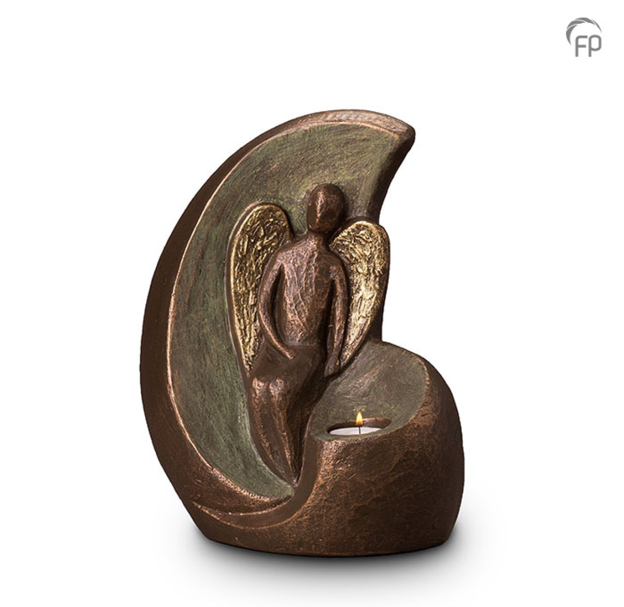 Deze keramische urn 'Geborgen Engel waxine' wordt met de hand gemaakt door de Nederlandse keramist Geert Kunen, waardoor iedere urn uniek is. Het keramiek wordt afgewerkt met een bronskleurige finish (soms iets 'groenig'). Deze urn wordt uitgevoerd in één maat (3 liter/30 cm hoog). Een prachtig symbool om uw geliefde in te gedenken. Bezoek ook onze showroom en bekijk onze uitgebreide collectie sierurnen. Prijs EUR 499,00 (exclusief vullen)
