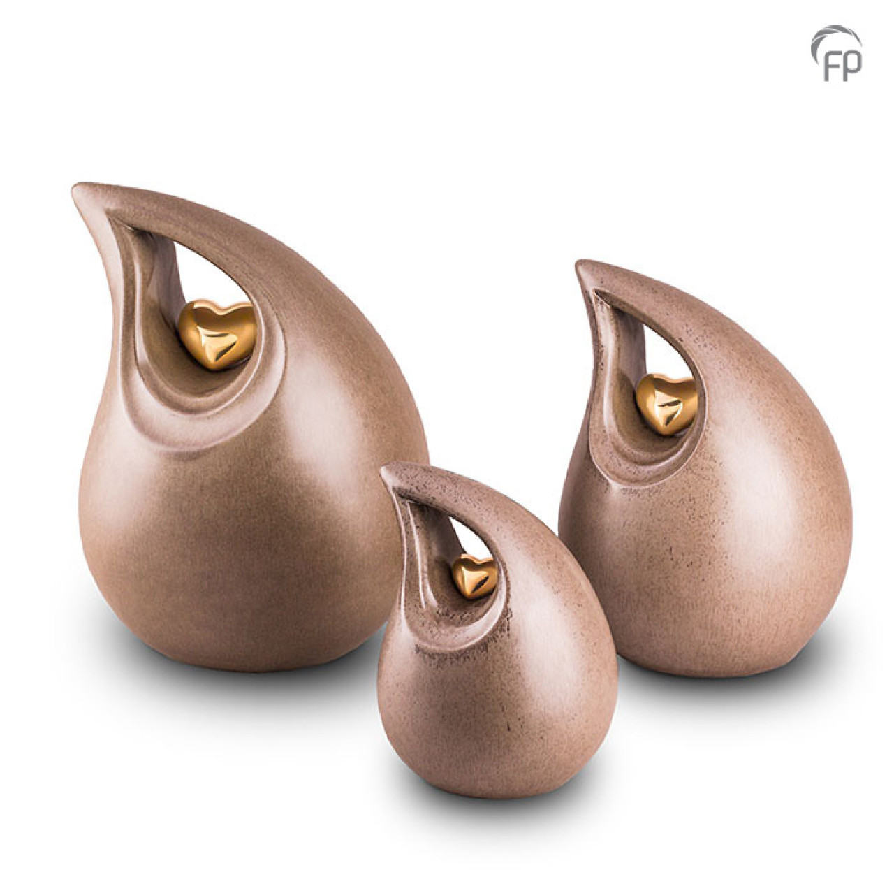 Deze keramische sierurnen met gouden hart zijn er in 3 verschillende maten (3,8 liter / 2,2 liter / 0,8 liter), hier afgebeeld in een zand/bruine tint. Een prachtig symbool om uw geliefde in te gedenken. Bezoek ook onze showroom en bekijk onze uitgebreide collectie sierurnen. Prijs EUR 355,00 / EUR 285,00 / EUR 205,00