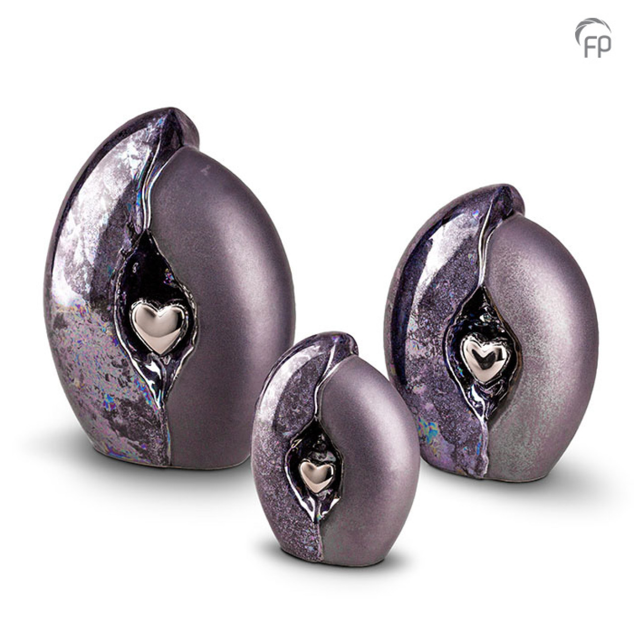 De keramische sierurnen met zilver hart zijn er in 3 verschillende maten (3,8 liter / 2,2 liter / 0,8 liter), hier afgebeeld in een parelmoerblauw/zwarte tint. Een prachtig symbool om uw geliefde in te gedenken. Bezoek ook onze showroom en bekijk onze uitgebreide collectie sierurnen. Prijs EUR 395,00 / EUR 295,00 / EUR 255,00