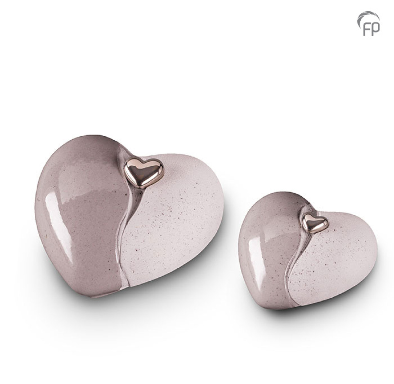 Deze keramische sierurnen met zilveren hart zijn er in 2 verschillende maten (3,8 liter / 1,4 liter), hier afgebeeld in een zand/bruine tint. Een prachtig symbool om uw geliefde in te gedenken. Bezoek ook onze showroom en bekijk onze uitgebreide collectie sierurnen. Prijs EUR 385,00 / EUR 290,00
