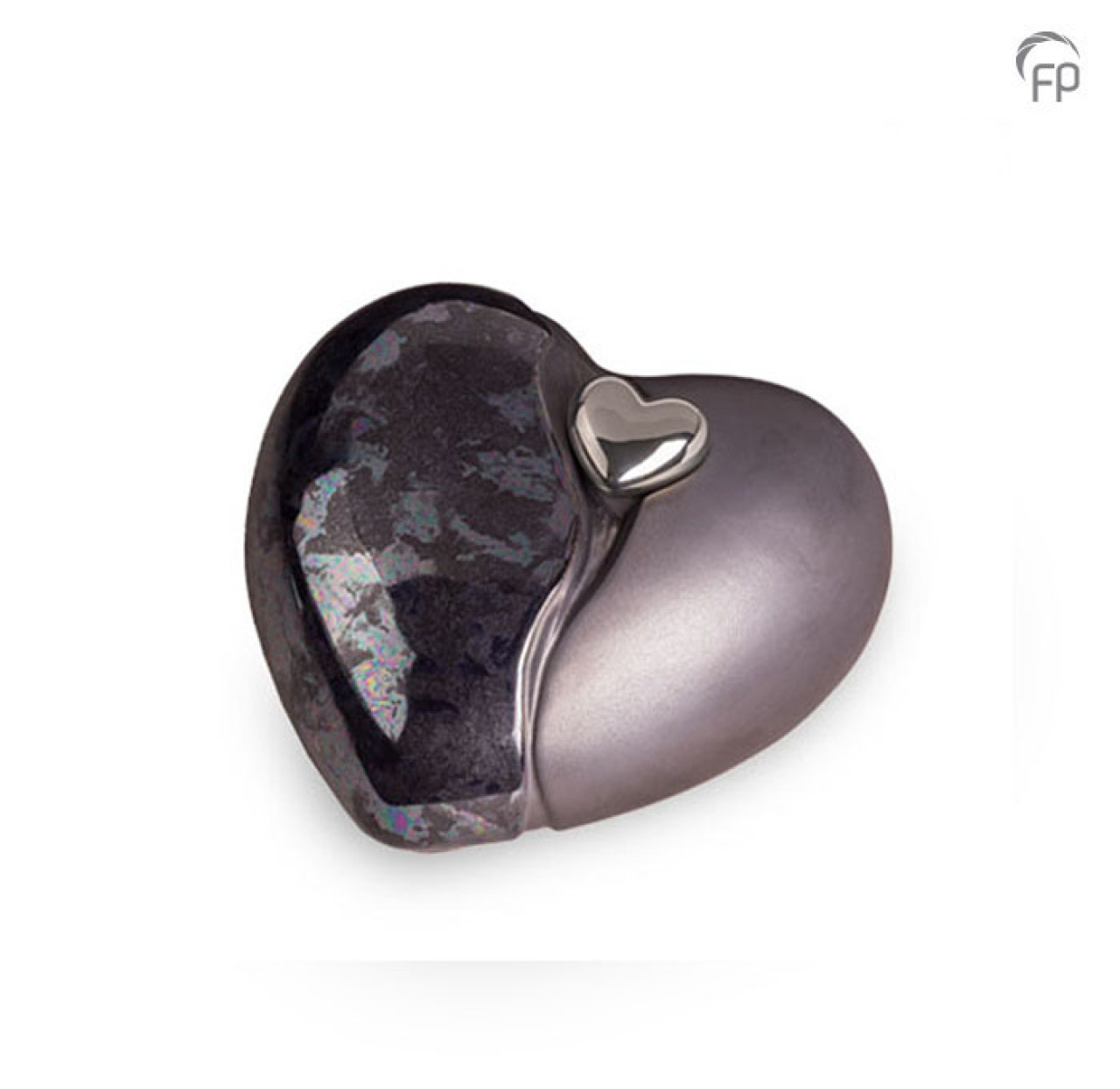 Deze keramische sierurn met hart is er in 2 verschillende maten (3,8 liter/24 cm en 1,4 liter/17 cm). Hier afgebeeld in een parelmoer blauwe tint gecombineerd met een mat zwarte tint. Een prachtig symbool om uw geliefde in te gedenken. Bezoek ook onze showroom en bekijk onze uitgebreide collectie sierurnen. Prijs EUR 395,00/ EUR 295,00