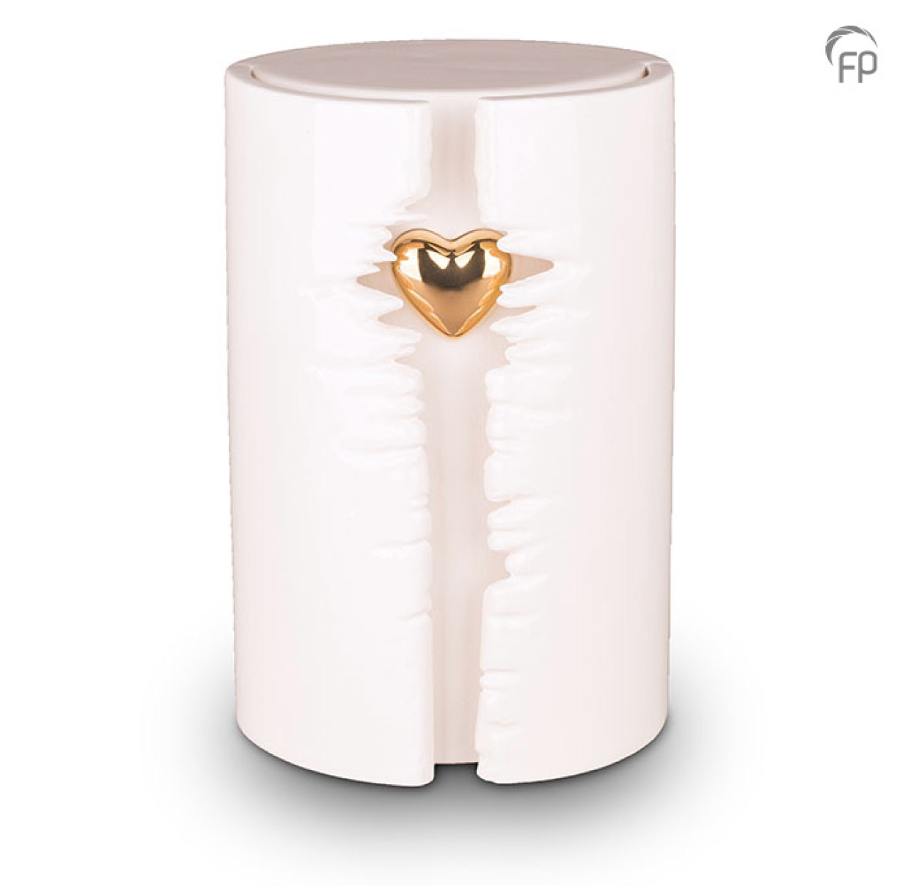 Deze keramische sierurn heeft een ingebouwde LED-verlichting en wordt uitgevoerd in 1 maat (3,8 liter). Deze urn heeft een witte tint met als decoratie een gouden hart. Een prachtig symbool om uw geliefde in te gedenken. Bezoek ook onze showroom en bekijk onze uitgebreide collectie sierurnen. Prijs EUR 475,00