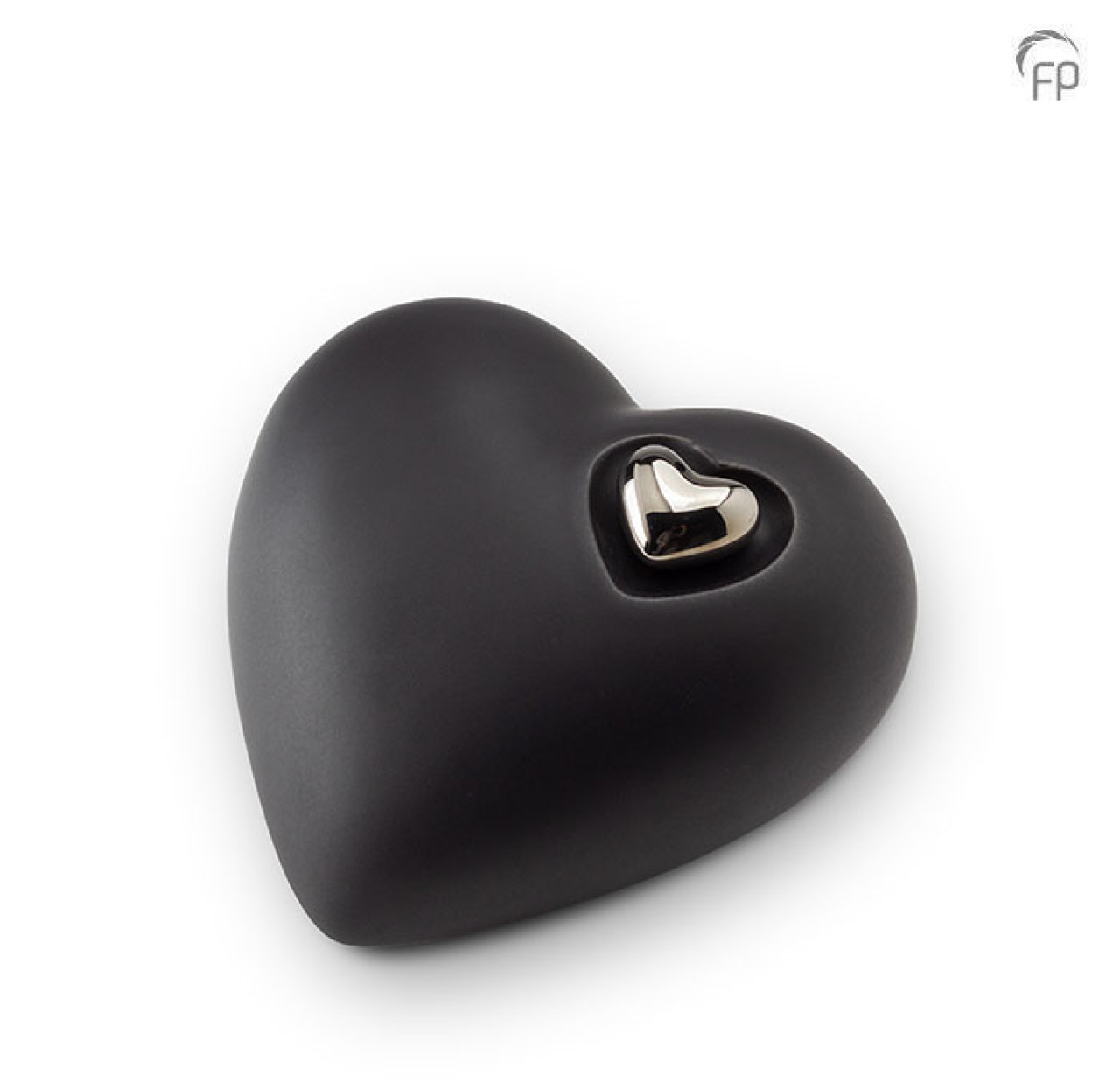 De Keramische Sierurn Zwart Hart is van speciale klei vervaardigd. De kunstenaars geven de urn een vorm die vervolgens wordt bedekt met verschillende kleuren emaille. Een prachtig symbool om uw geliefde in te gedenken. Deze keramische sierurnen zijn leverbaar in 3 verschillende maten (1,4 liter/17 cm, 0,7 liter/14 cm, 0,05 liter/6 cm). De twee grootste maten zijn tevens versierd met een klein zilverkleurig hart. Bezoek ook onze showroom en bekijk onze uitgebreide collectie sierurnen. Prijs EUR 245,00 / EUR 195,00 / EUR 70,00