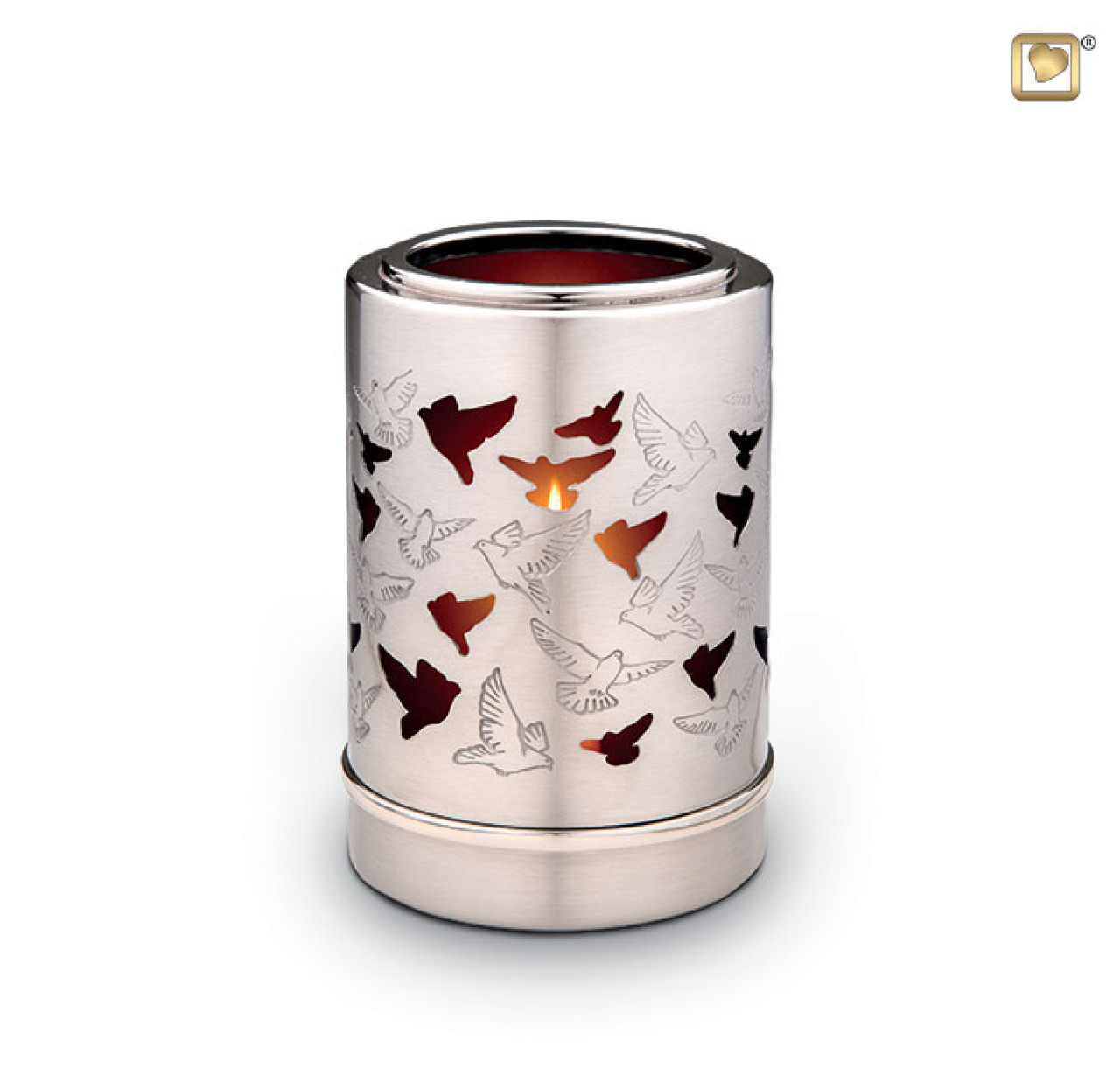 De sierurn messing kaarshouder vogels is een kwaliteitsproduct en wordt van hoogwaardig metaal vervaardigd. Om de duurzaamheid van de messing kwaliteitsproducten te garanderen wordt ieder product voorzien van een speciale finish. Dit is een unieke laklaag die de urn beschermt en tegelijkertijd voorziet van een glanzende afwerking. De inhoud van de kaarshouder is 0,3 liter en is 17 cm hoog. Prijs EUR 200,00