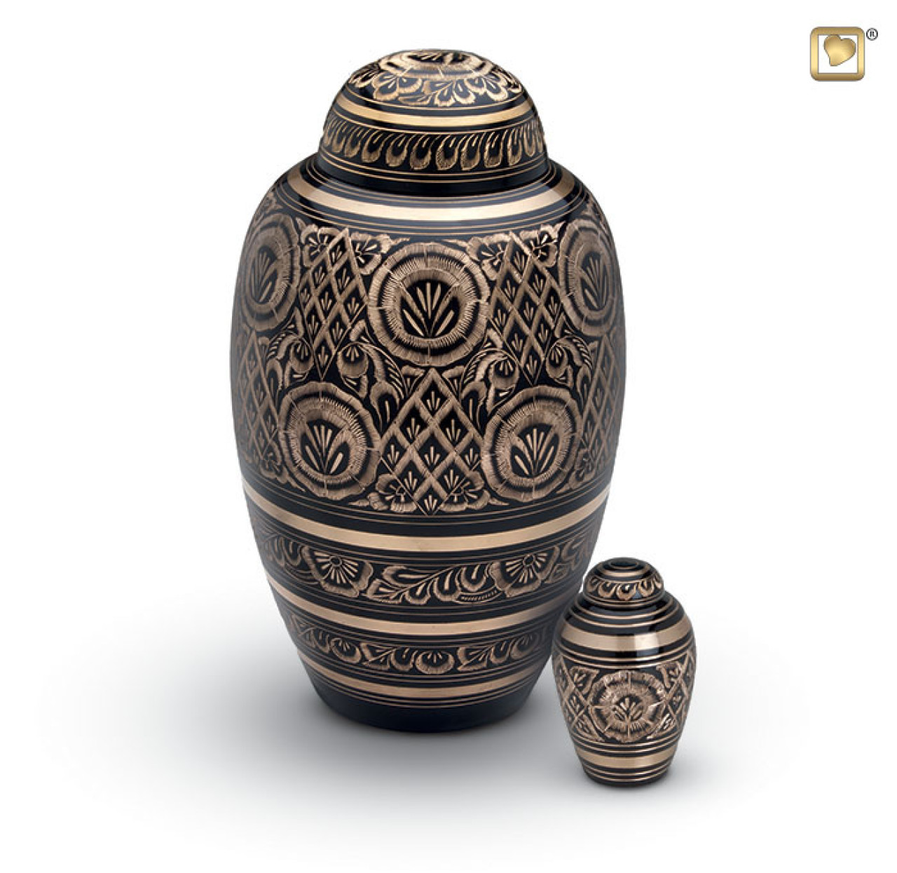 De sierurn messing is een kwaliteitsproduct en wordt van hoogwaardig metaal vervaardigd. Om de duurzaamheid van de messing kwaliteitsproducten te garanderen wordt ieder product voorzien van een speciale finish. Dit is een unieke laklaag die de urn beschermt en tegelijkertijd voorziet van een glanzende afwerking. De inhoud van de urn is 3,40 liter en is 26 cm hoog. Deze urn is ook verkrijgbaar in keepsake uitvoering, waarvan de urn een inhoud heeft van 0,05 liter en is 8 cm hoog. Prijs EUR 314,00/EUR 80,00 (inclusief vullen)