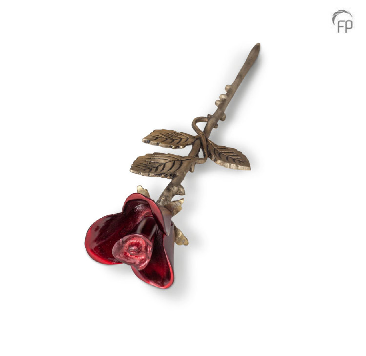 Deze metalen Urn Rode roos wordt gekenmerkt door de sublieme vormgeving en afwerking, met volop oog voor detail. De urn wordt geproduceerd met aandacht voor mens en milieu, zonder concessies te doen op kwaliteit of design. Het eindresultaat is een hoogwaardig en bovenal eerlijk product, zorgvuldig, ambachtelijk en met liefde geproduceerd. Een waardig product om uw dierbare te gedenken. Deze urn is 34 cm lang. Een symbolische hoeveelheid as kan er in worden bewaard. Prijs: EURO 99,00 (exclusief vullen)