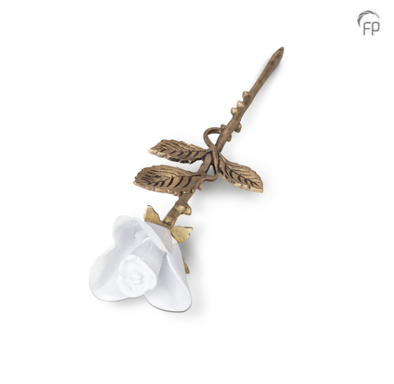 Deze metalen Urn Witte roos wordt gekenmerkt door de sublieme vormgeving en afwerking, met volop oog voor detail. De urn wordt geproduceerd met aandacht voor mens en milieu, zonder concessies te doen op kwaliteit of design. Het eindresultaat is een hoogwaardig en bovenal eerlijk product, zorgvuldig, ambachtelijk en met liefde geproduceerd. Een waardig product om uw dierbare te gedenken. Deze urn is 34 cm lang. Een symbolische hoeveelheid as kan er in worden bewaard. Prijs: EURO 99,00 (exclusief vullen)